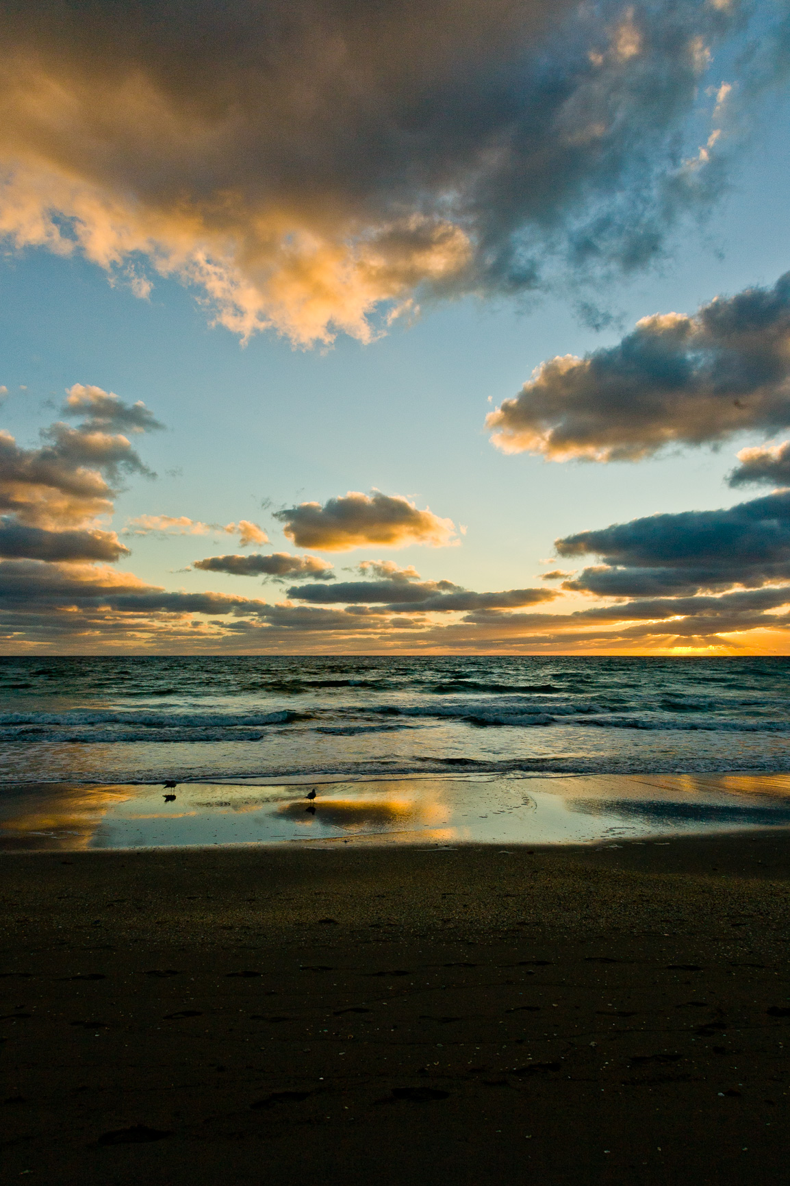 Sandpipers pace the beach at dawn. Hollywood, Florida, USA.
