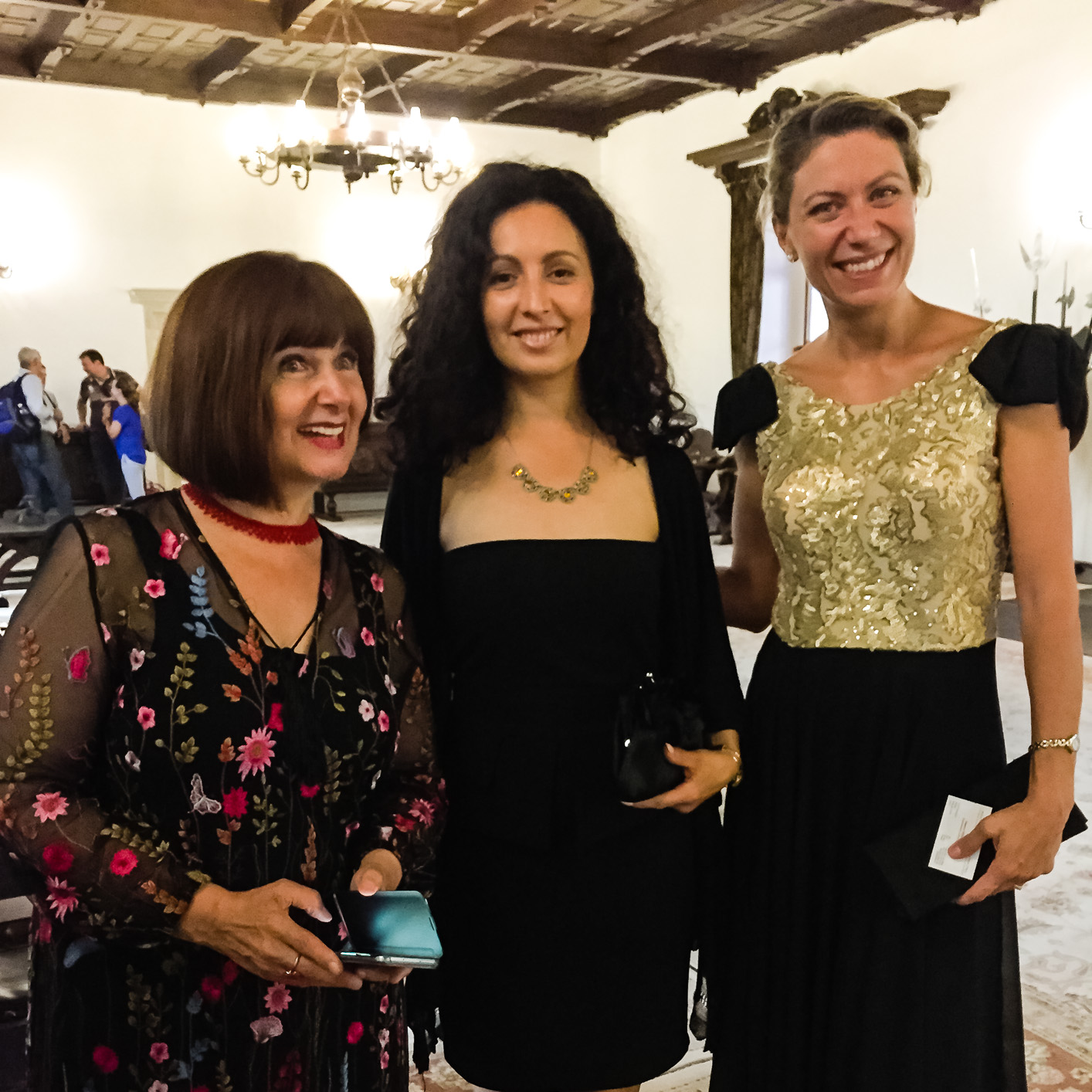 Simona-Mirela Miculescu, Ligia and Valentina Vasile in the throne room of Cetatea Fagaras. La evenimentul “Proud To Be Romanian” organizat la Cetatea Fagaras pe 22 iulie 2017.