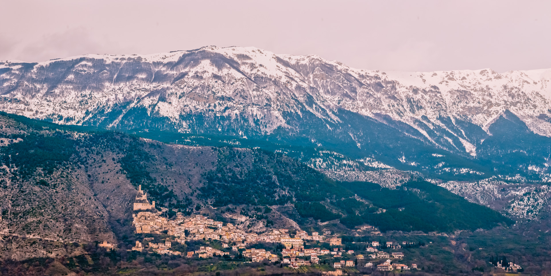 A town nestled at the foot of the mountains in the Abruzzo region of Italy.