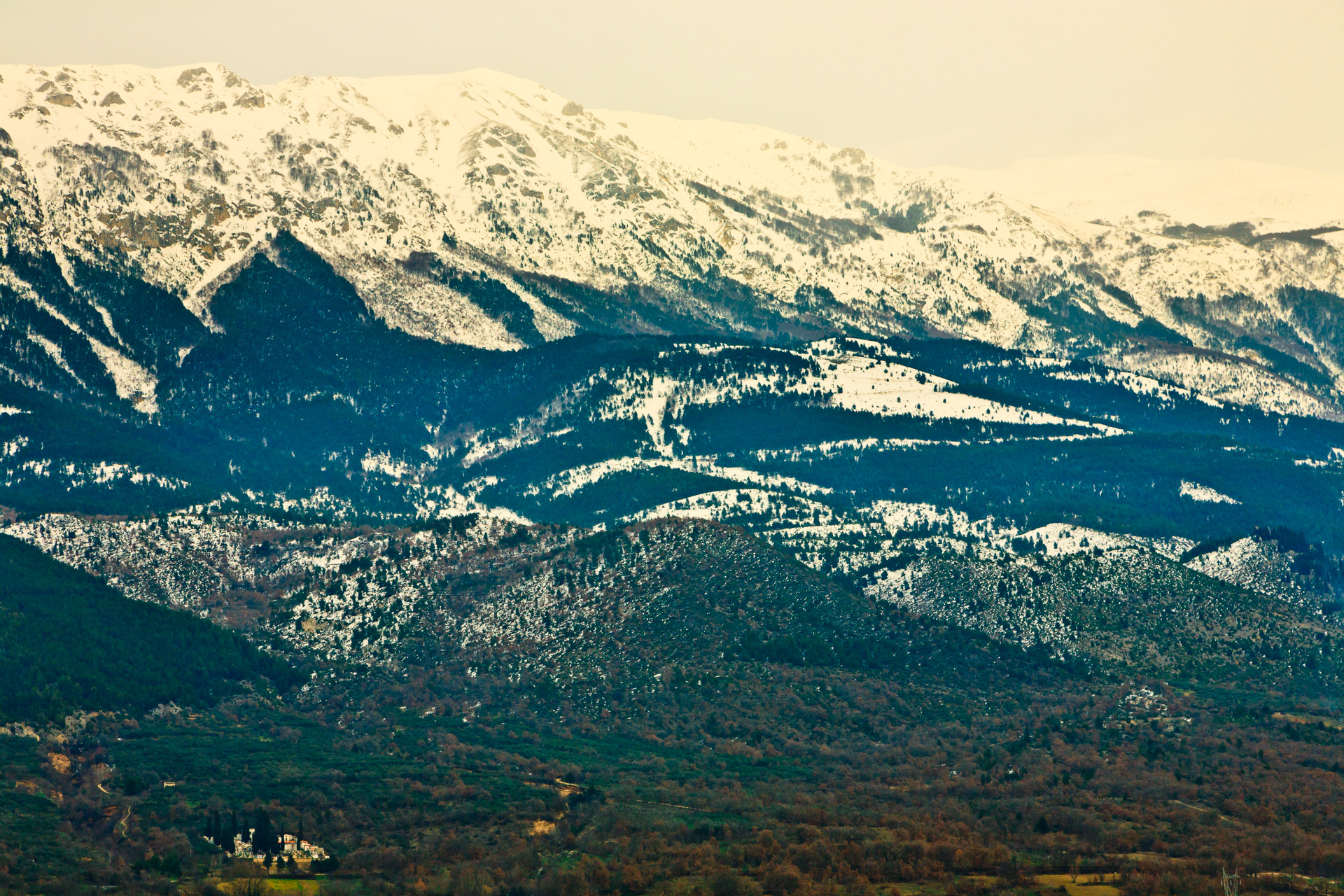 You get a real sense of the size of these mountains if you look at the little village nestled at their footsteps. On the road between Grottammare and Rome, Italy.