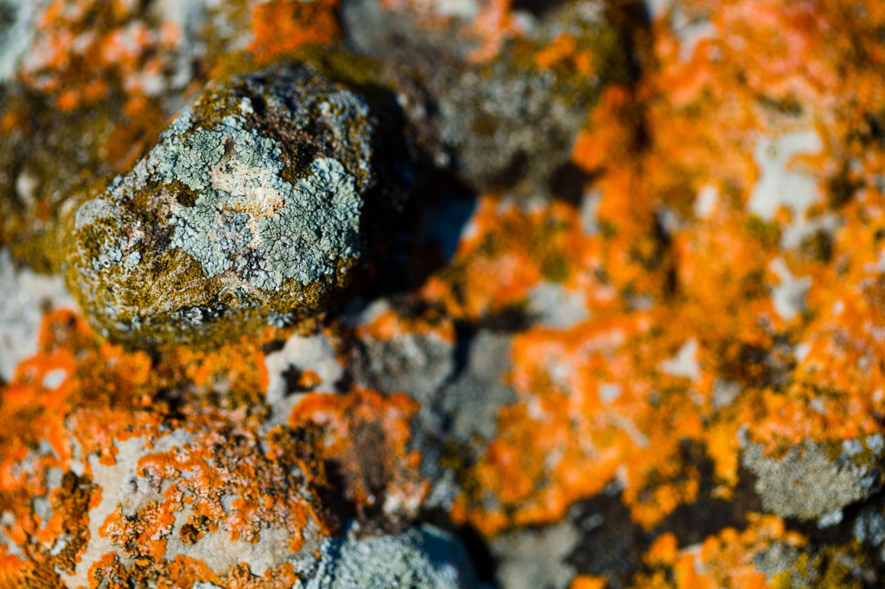 Lichen growing on a hillside rock in the region of Gura Dobrogei, Romania.