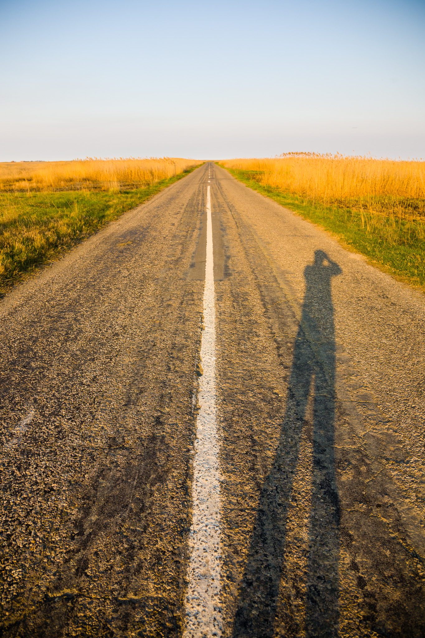 My shadow on a well-traveled road