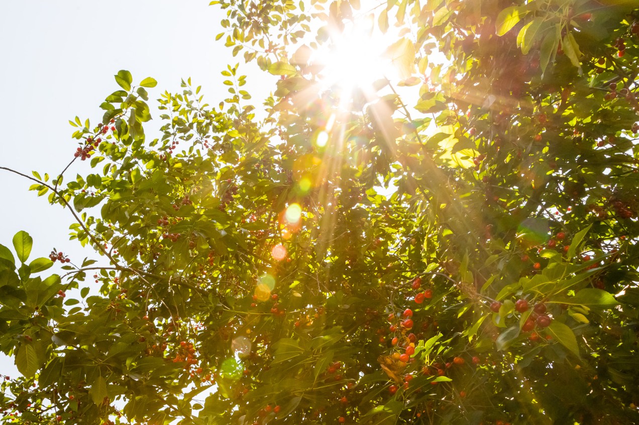 Ripening sour cherries in our garden