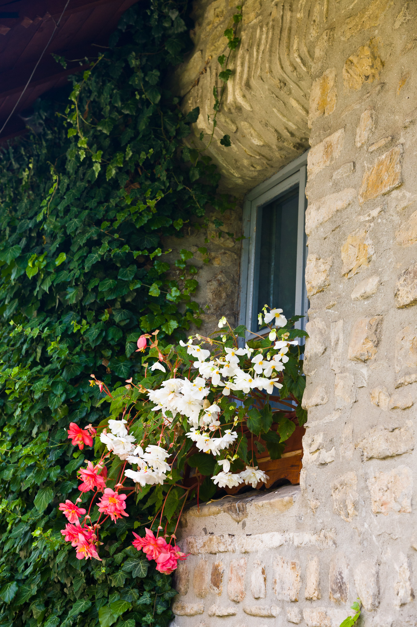 Flowers at the cloisters, Manastirea Moldovita, Bucovina, Romania.