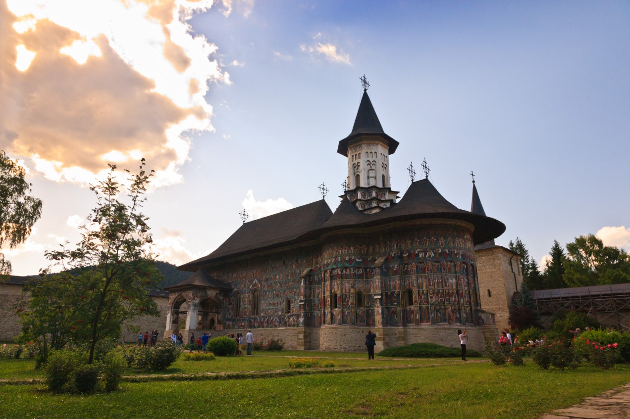 Interior courtyard, Manastirea Sucevita, Bucovina, Romania.