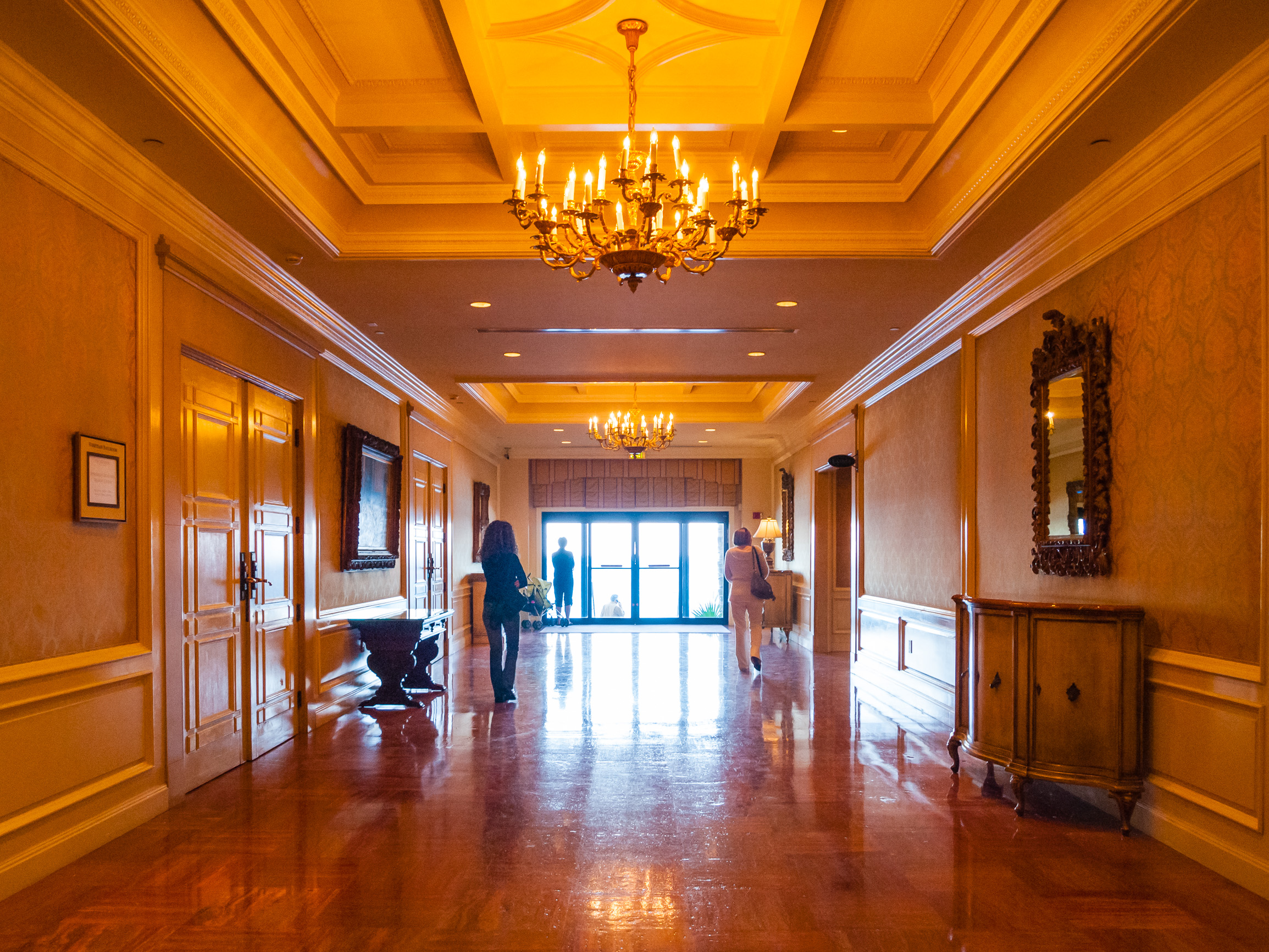 Hallway with chandeliers