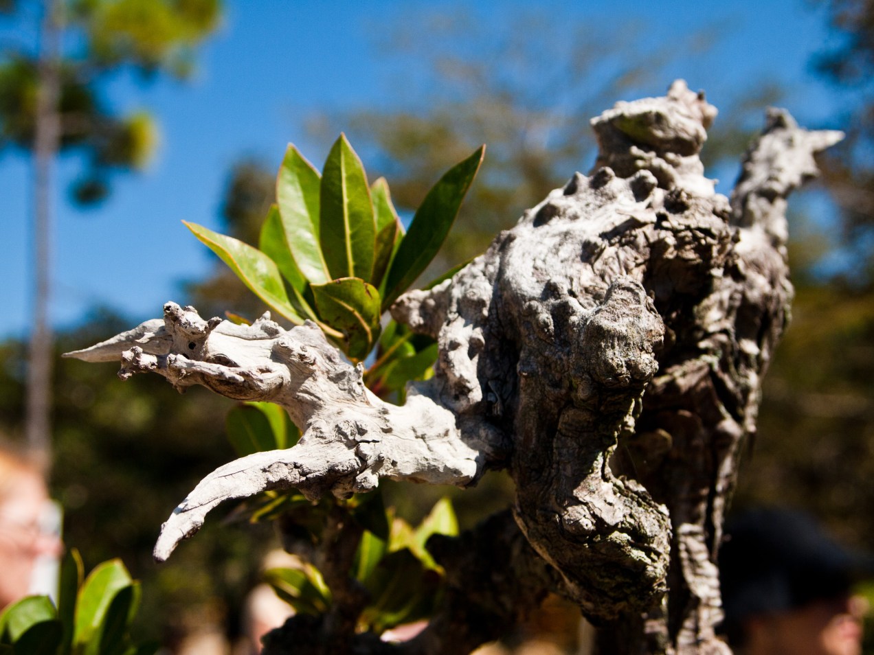 Knotted bonsai tree trunk, Morikami Museum and Japanese Gardens, Delray Beach, FL, USA.