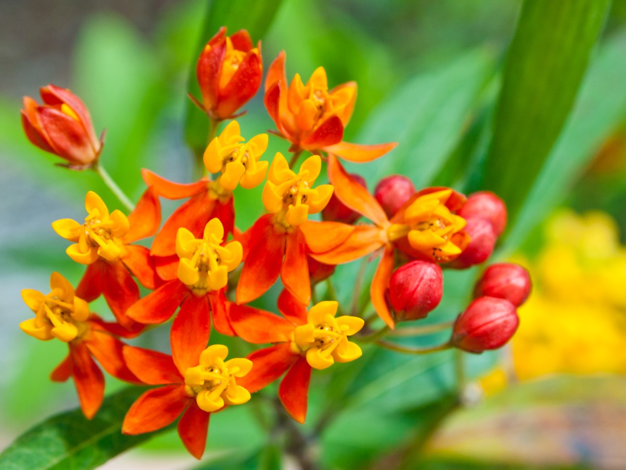 Tiny little orange-red flowers, Vizcaya, Miami, Florida, USA.