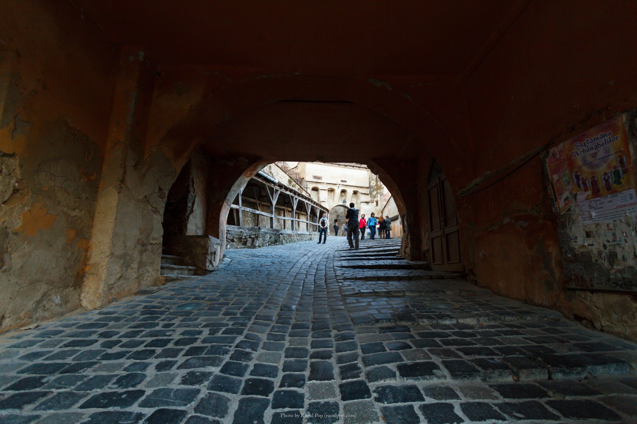 Evening in the medieval city of Sighisoara, in Transilvania, Romania