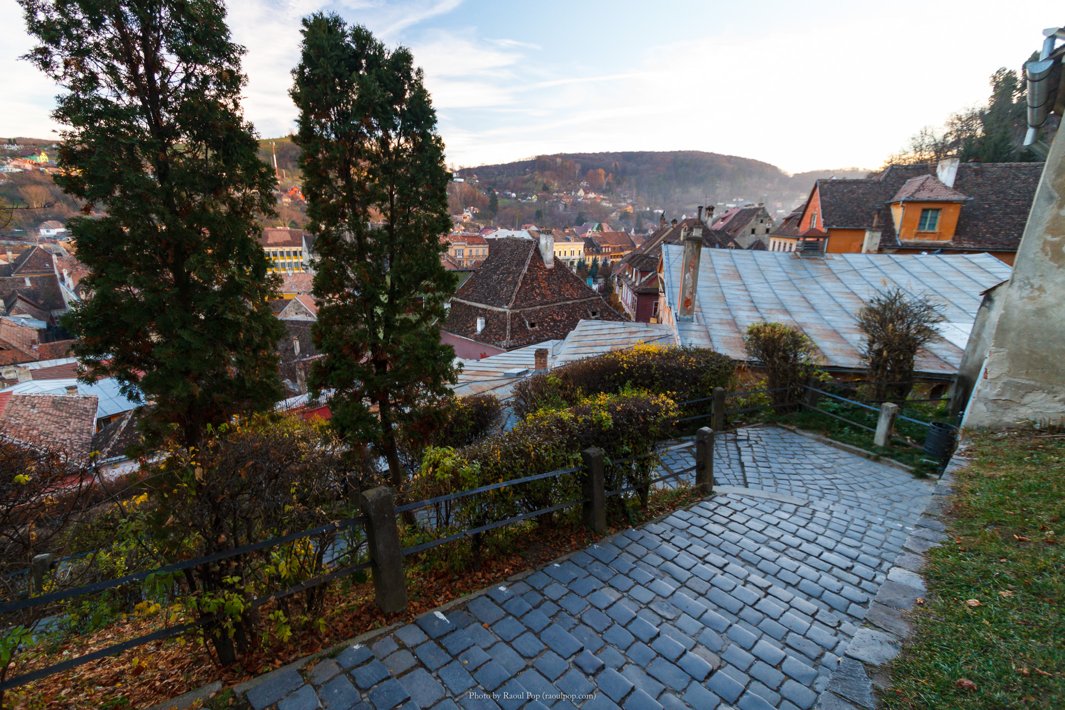 Evening in the medieval city of Sighisoara, in Transilvania, Romania