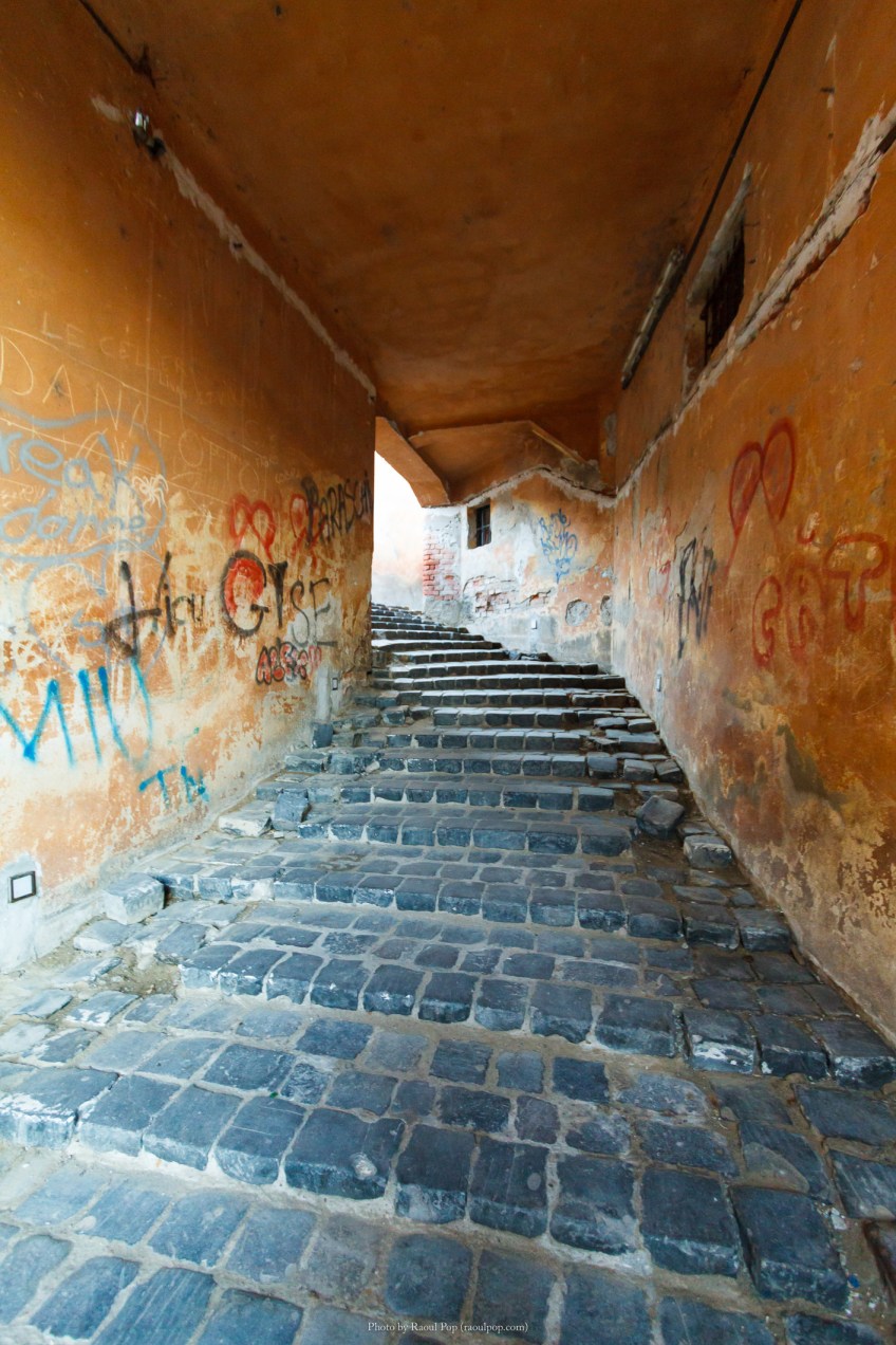 Evening in the medieval city of Sighisoara, in Transilvania, Romania