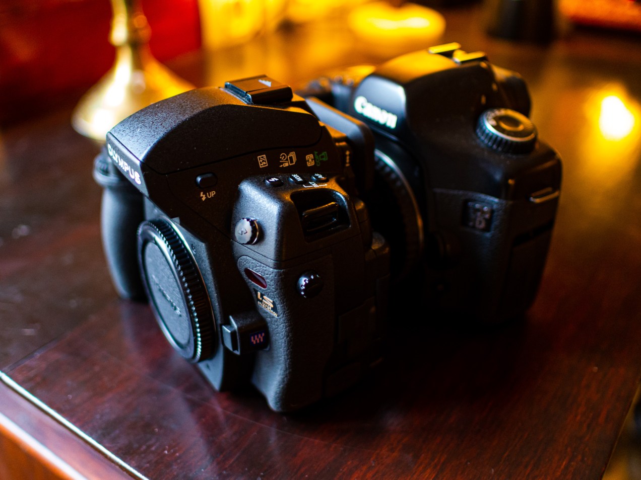 A side-by-side comparison of the Olympus E-3 with the Canon 5D