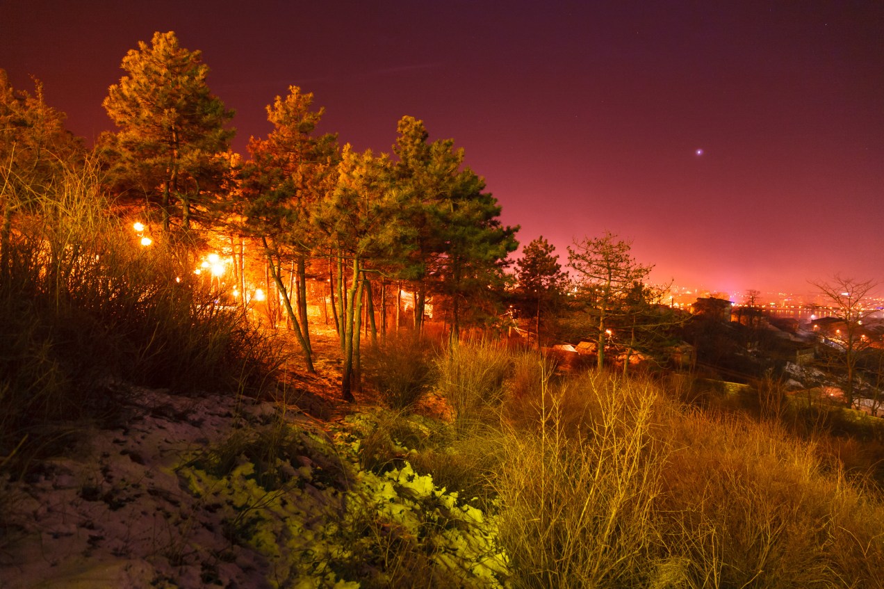 When I say cold, I mean it. Brrrr! My hands were frozen stiff the whole time. A chilly wind blew up the hillside from the Danube river, which is visible mid-right in this photo and froze me through and through. City lights cast a wonderful glow on the city in the distance, while street lights shone through the stems and branches of the evergreens on the left. I love the colors in this photo, it’s one of my favorites from that session.