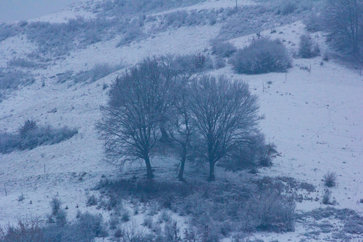 A grouping of trees on a hillside