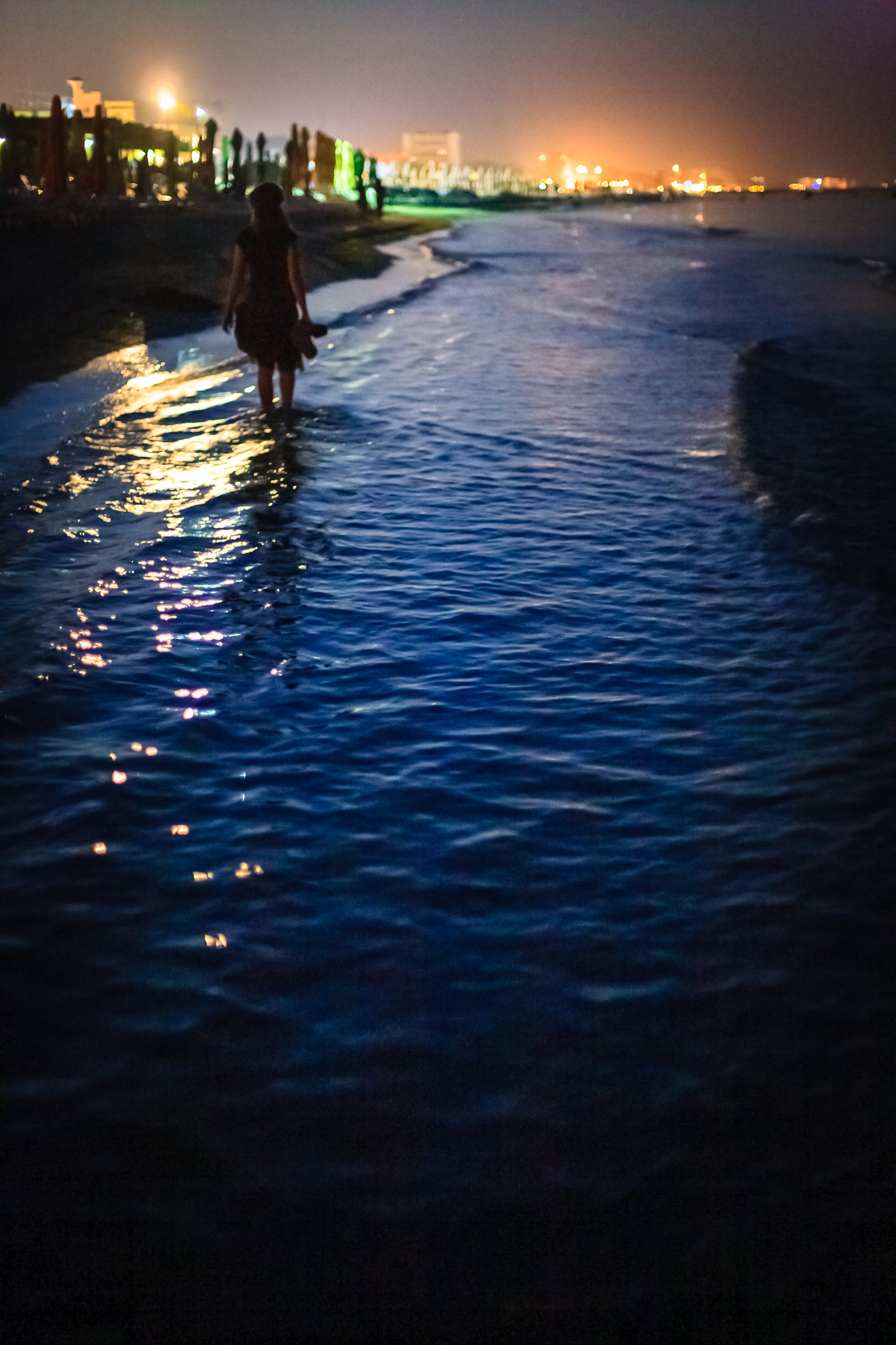 A night walk on the beach, Mamaia, Black Sea, Romania.
