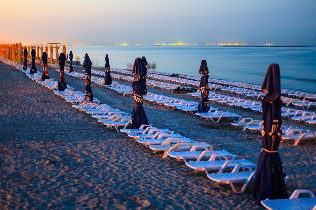 A night walk on the beach, Mamaia, Black Sea, Romania.