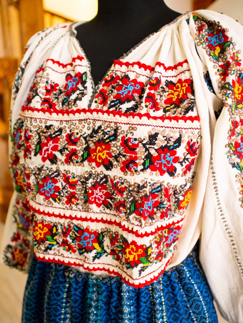 A particularly complicated design; a hand-sewn Romanian “ie” or traditional blouse
