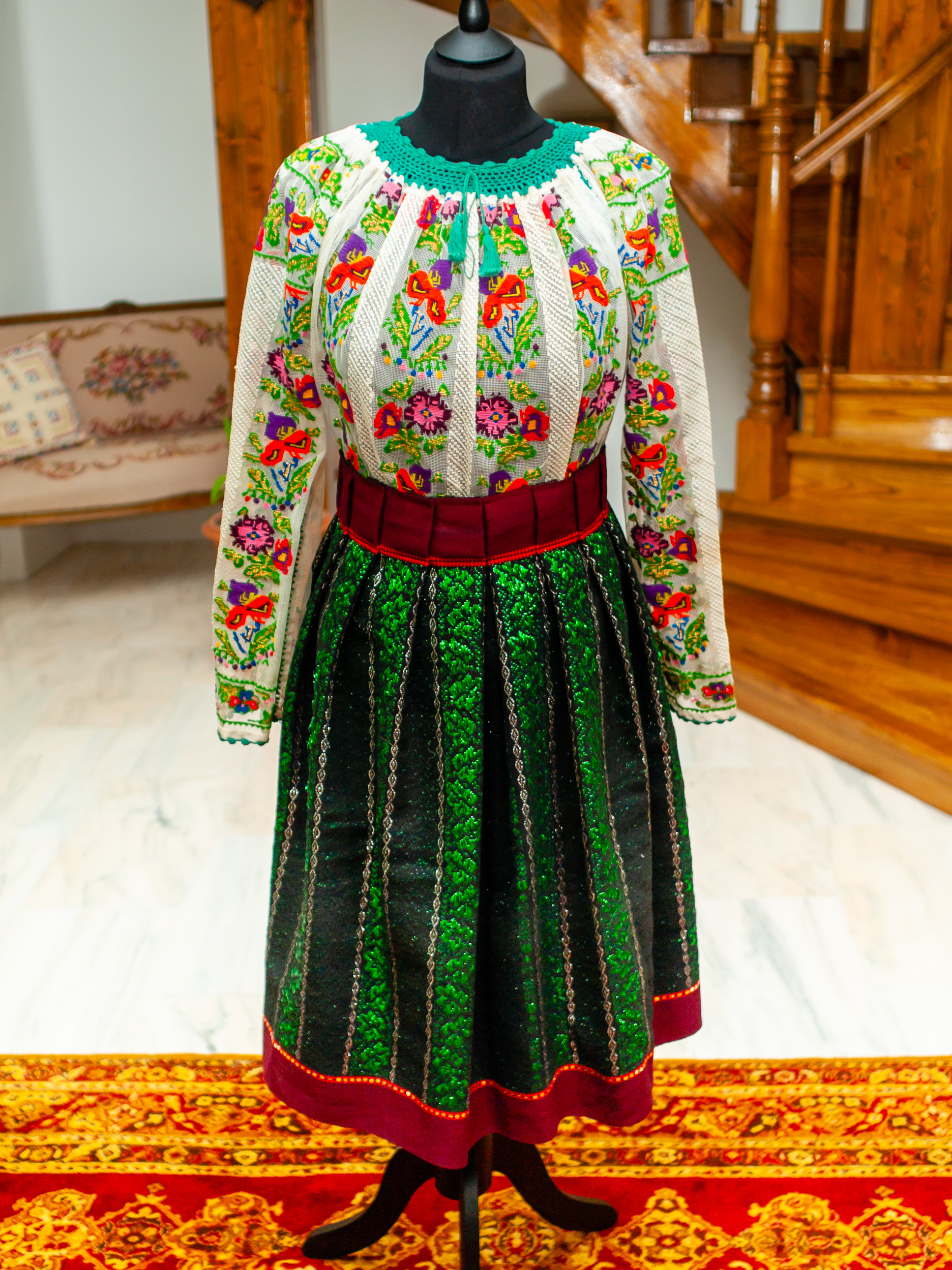 This costume has a handwoven blouse or “ie” and a loom-woven pleated skirt or “fota”