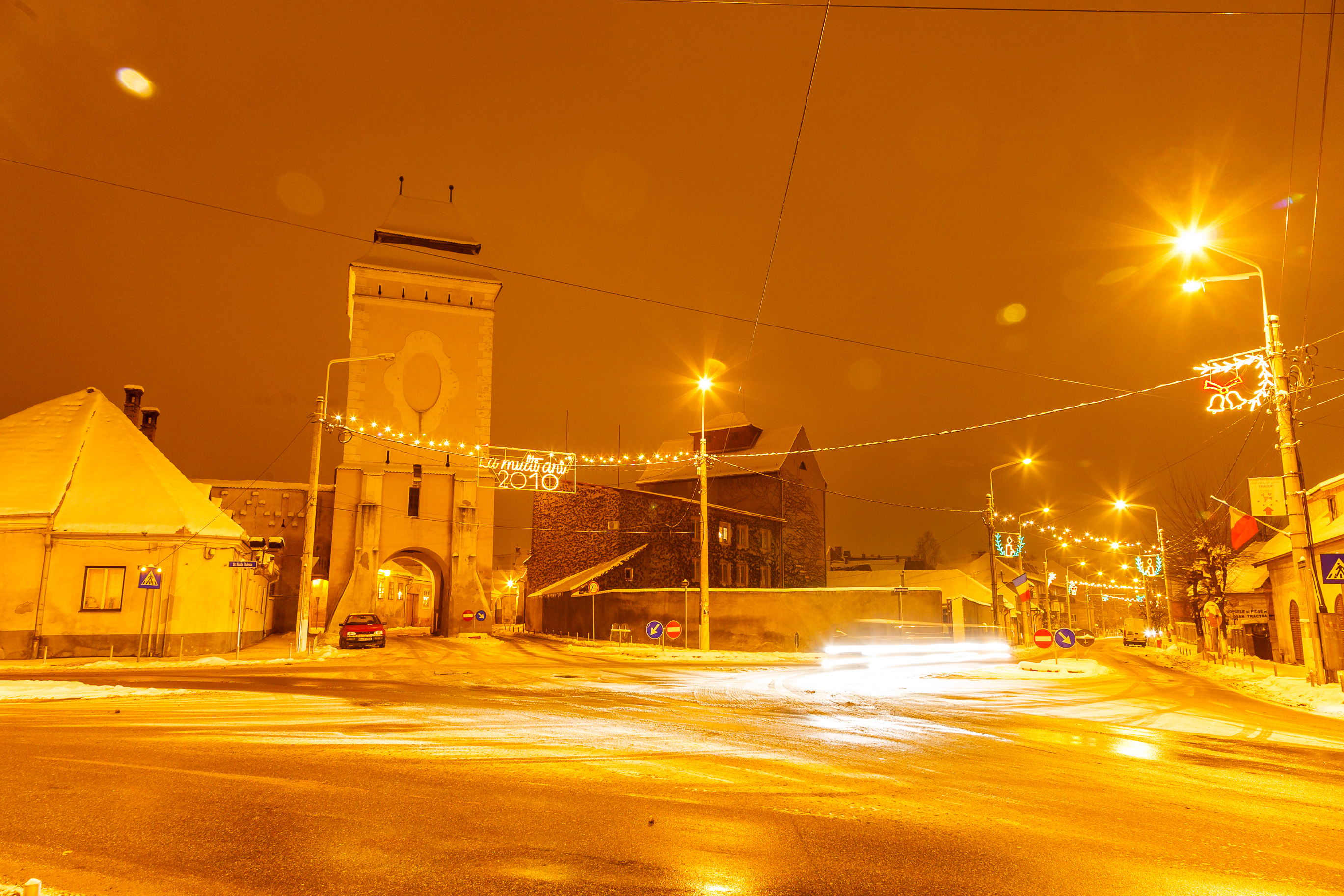 The intersection next to the Steingasser Turm, Medias, Transilvania, Romania