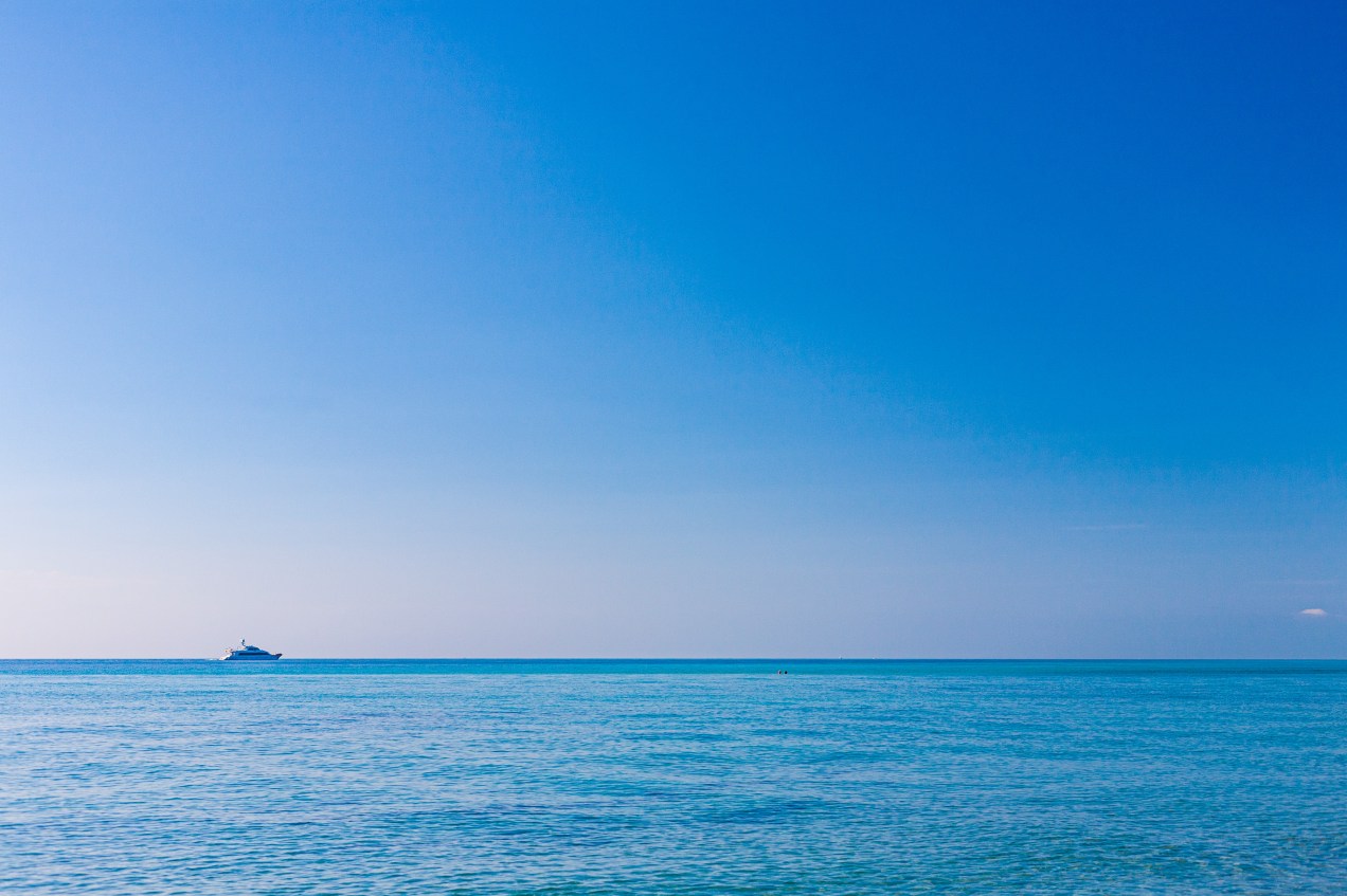 The two tiny specs in the distance are two people, swimming on a bank in shallow water. Taken in Dania Beach, FL, USA.