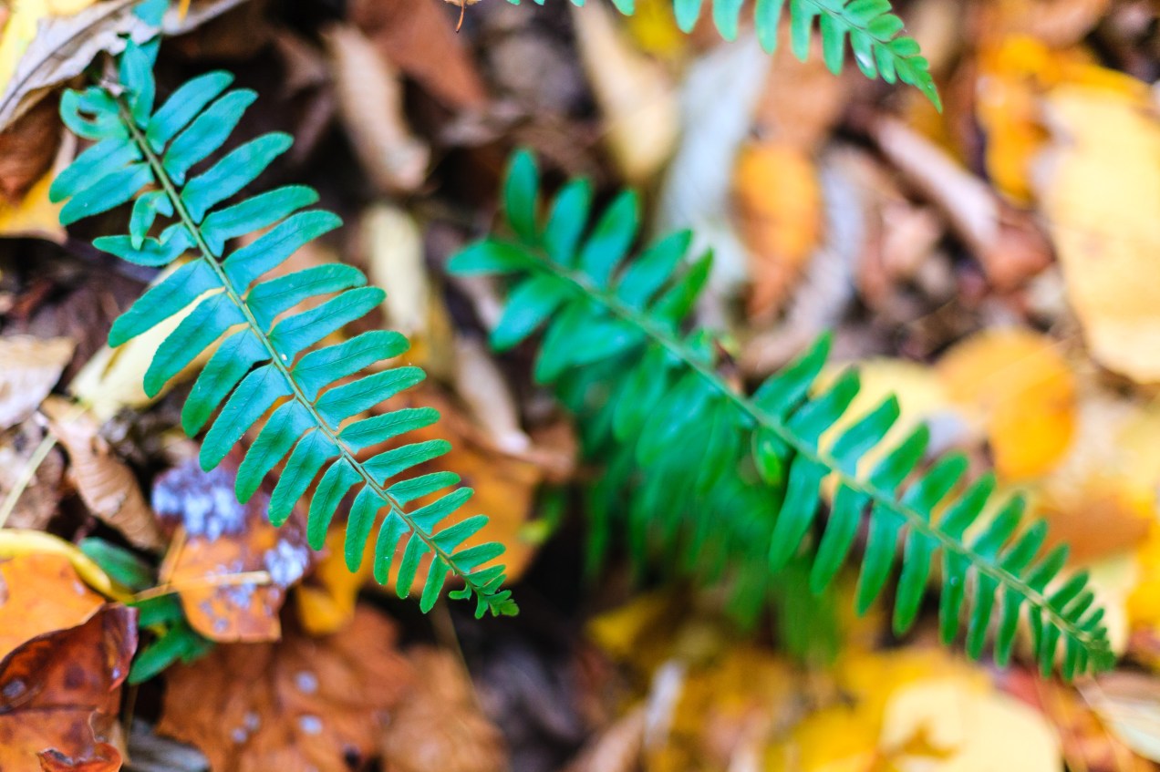 Ferns among fall foliage.