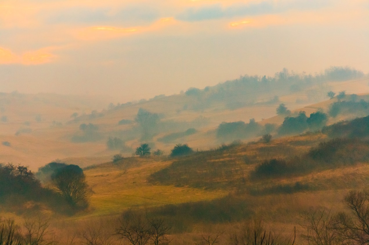 Fog hangs over the valley