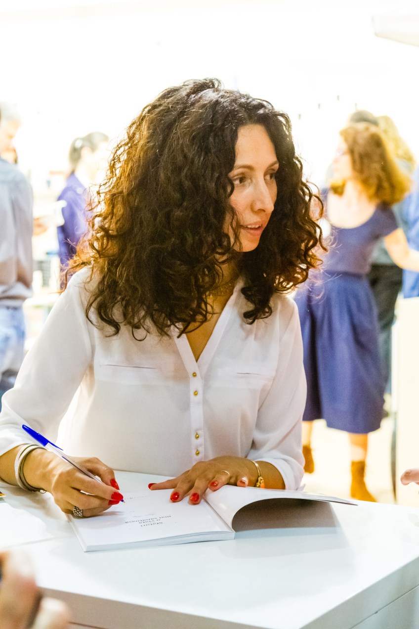 Giving autographs at the launch of her book, “Un ghid al detoxifierii in 15 zile”