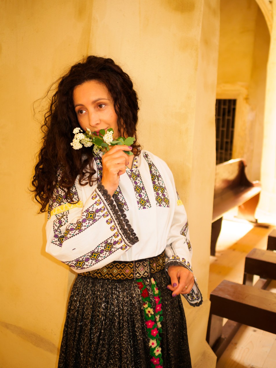 Ligia wearing a traditional Romanian costume