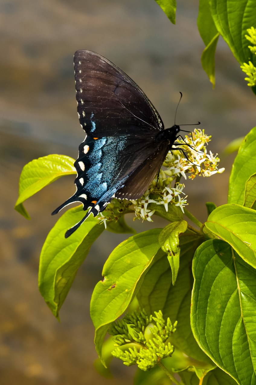 Butterfly feeding on blossoms, lakeside, Larriland Farm, Maryland, USA.