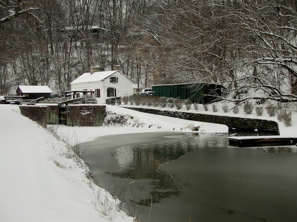 We took the car out on River Drive (it runs parallel to the Potomac River) and turned onto an access road that took us downhill, toward Lock 21 of the C&O Canal. It was quite possible that we wouldn’t be able to get back up onto the main road, but we didn’t care at the time. We were thoroughly enjoying ourselves.