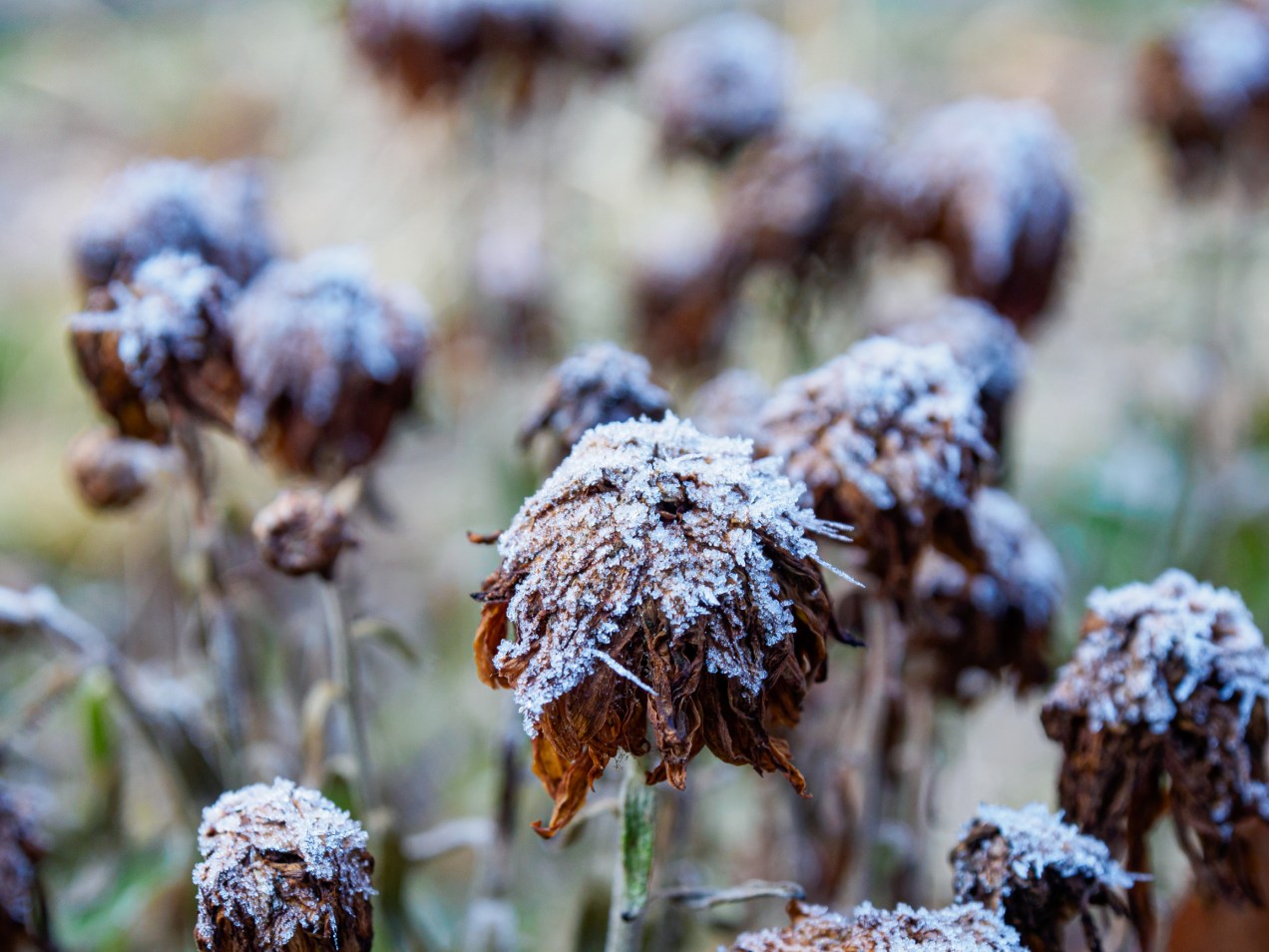 Frozen chrysanthemums