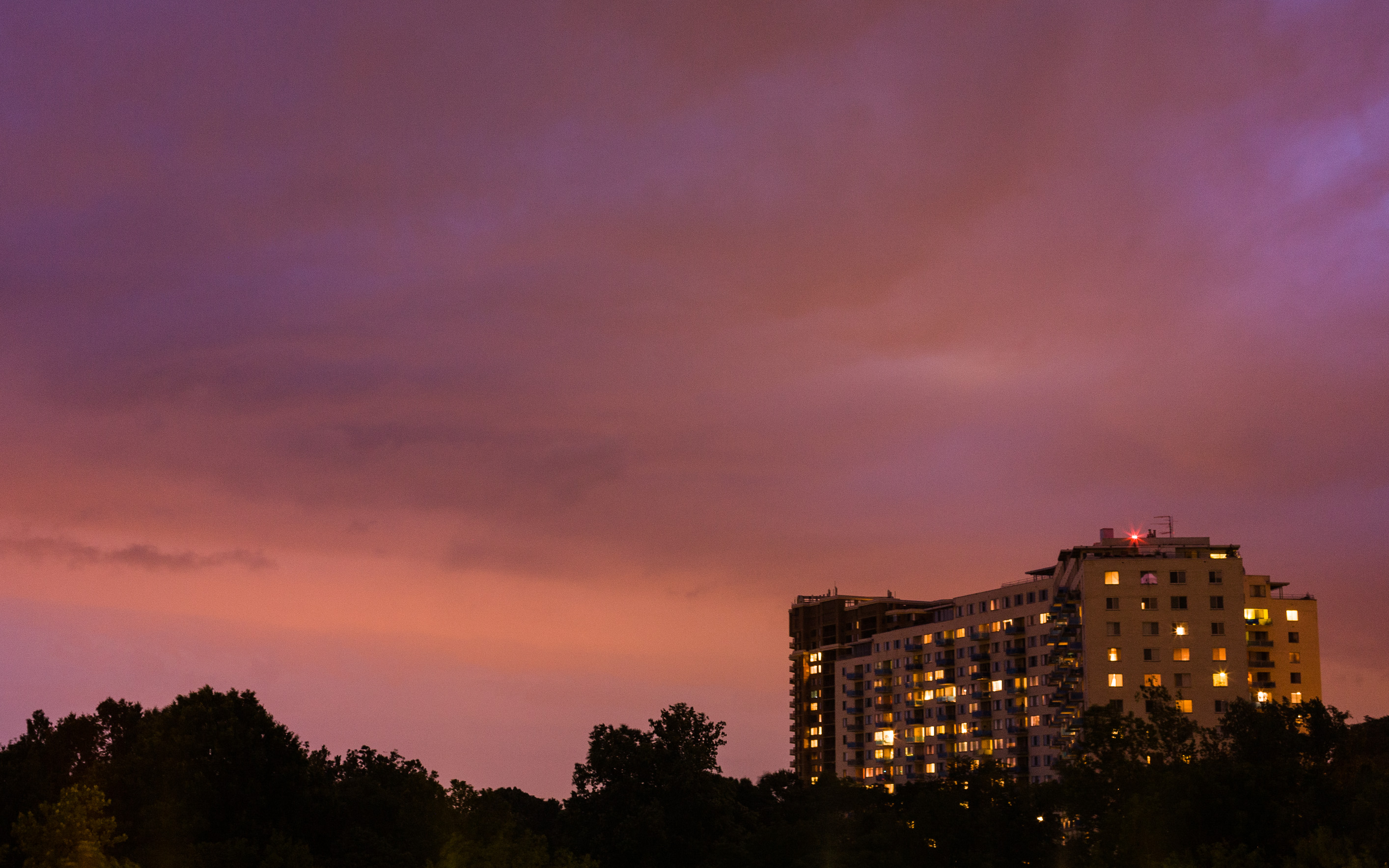 Our neighborhood at night, just after dusk had started to fade away. Taken in North Bethesda, MD, USA.