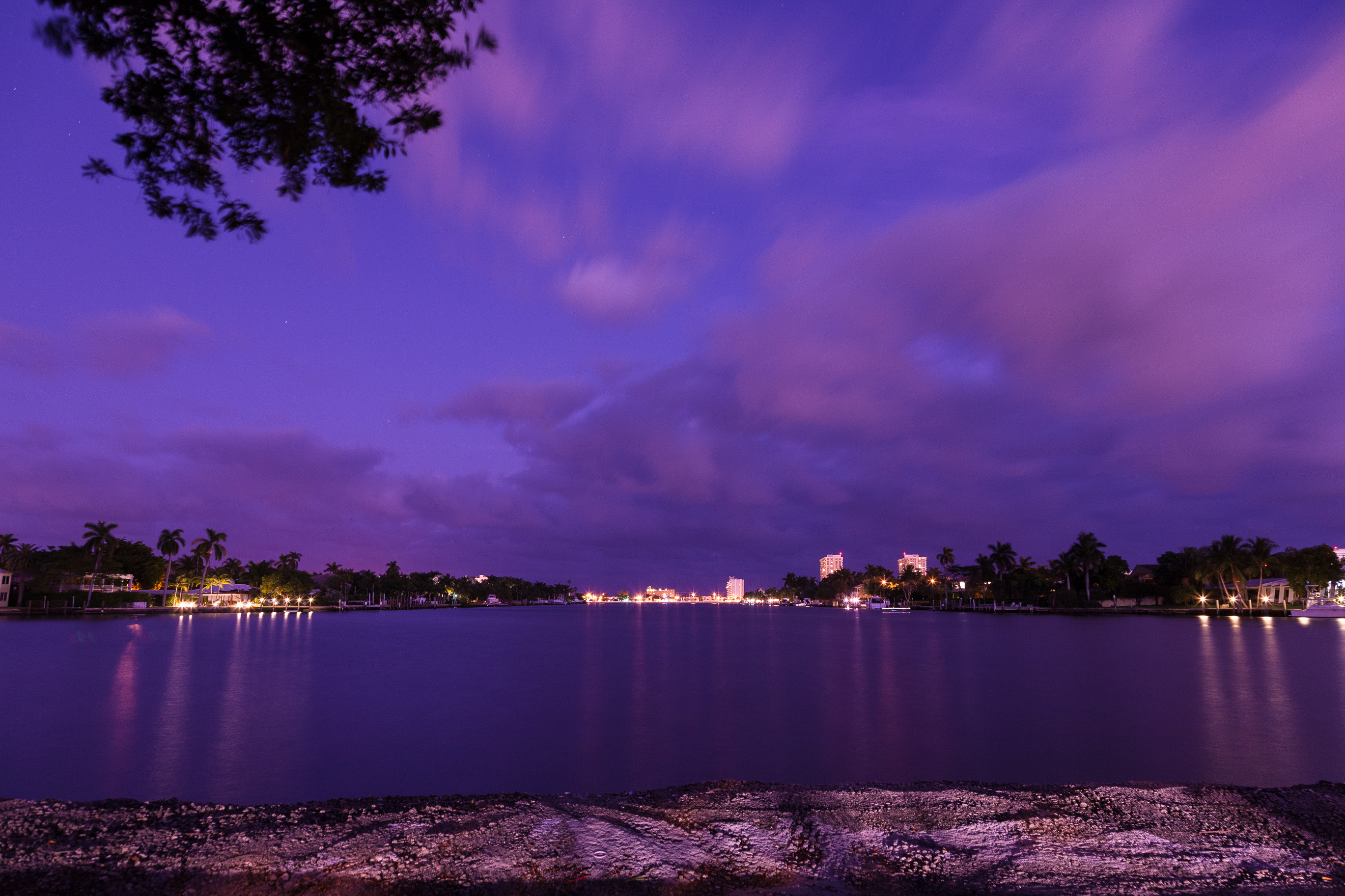 South Florida’s Intracostal Waterway at night, as seen from Hollywood, Florida, USA.