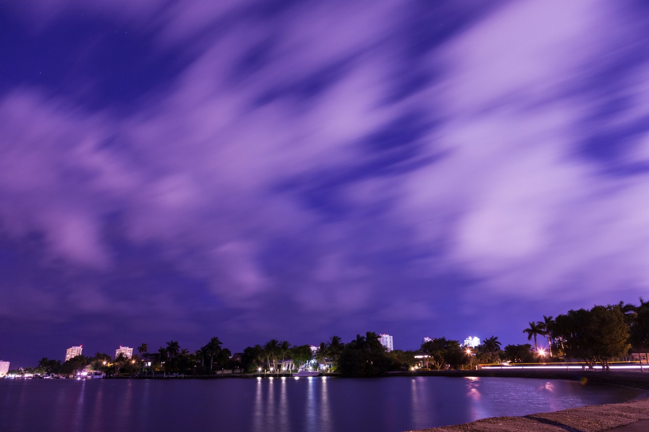 South Florida’s Intracostal Waterway at night, as seen from Hollywood, Florida, USA.