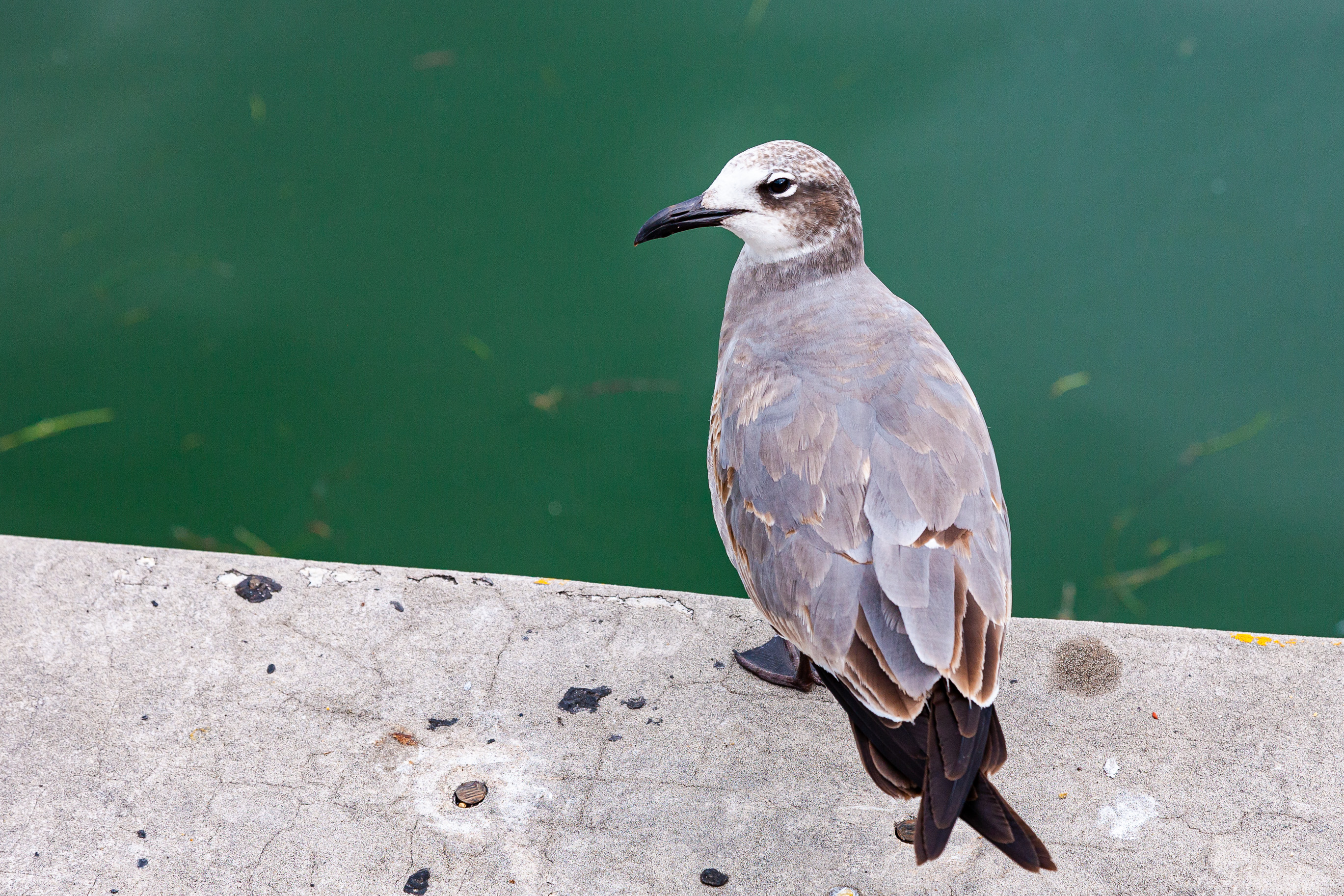 A seagul turns his head to look at me. The harbor and docks, Miami, Florida, USA.