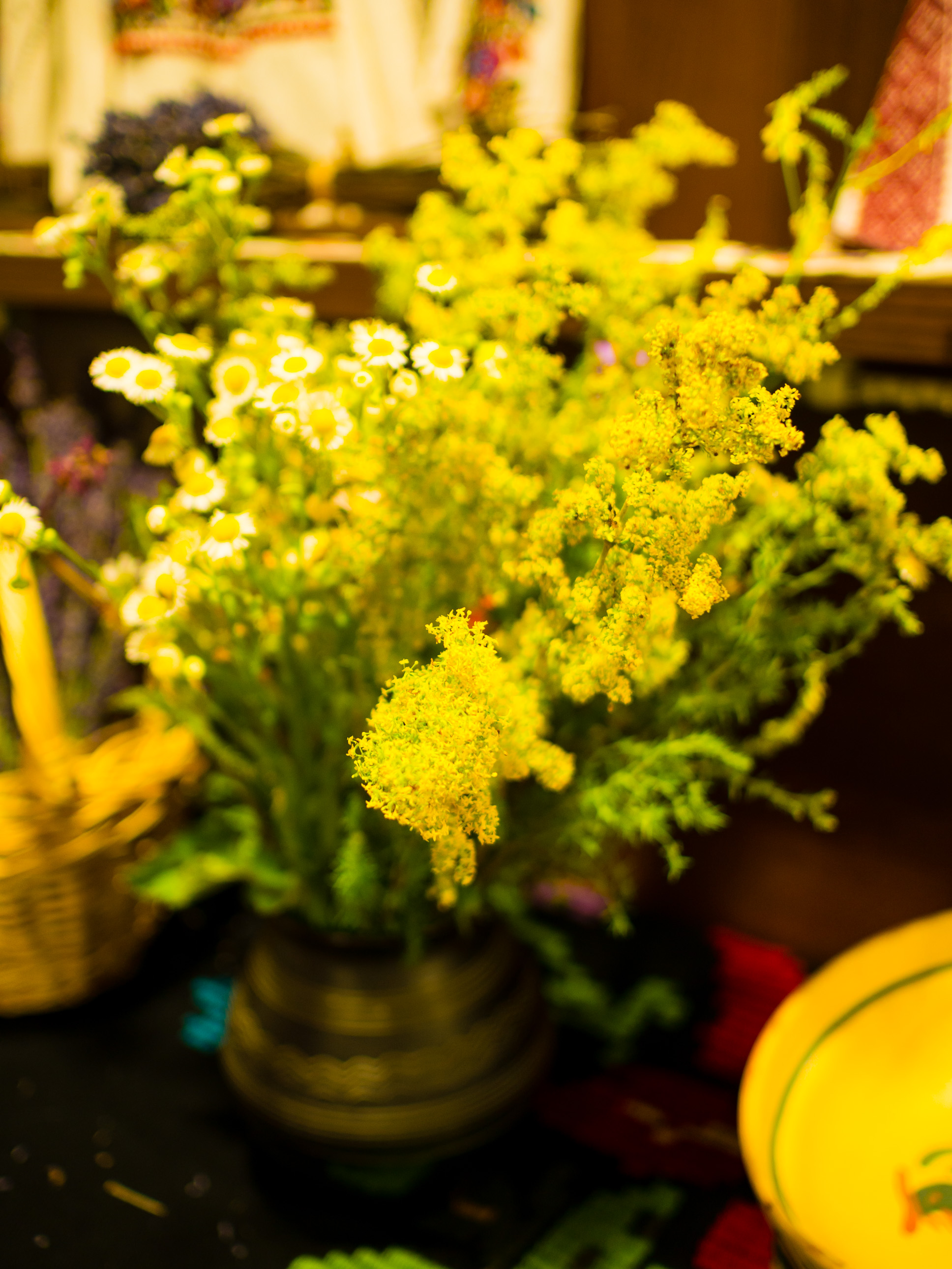 Yellow bedstraw (sanziene) and other assorted wildflowers. At Ligia’s exhibit, Muzeul Gazelor Naturale, Medias, Transilvania, Romania.