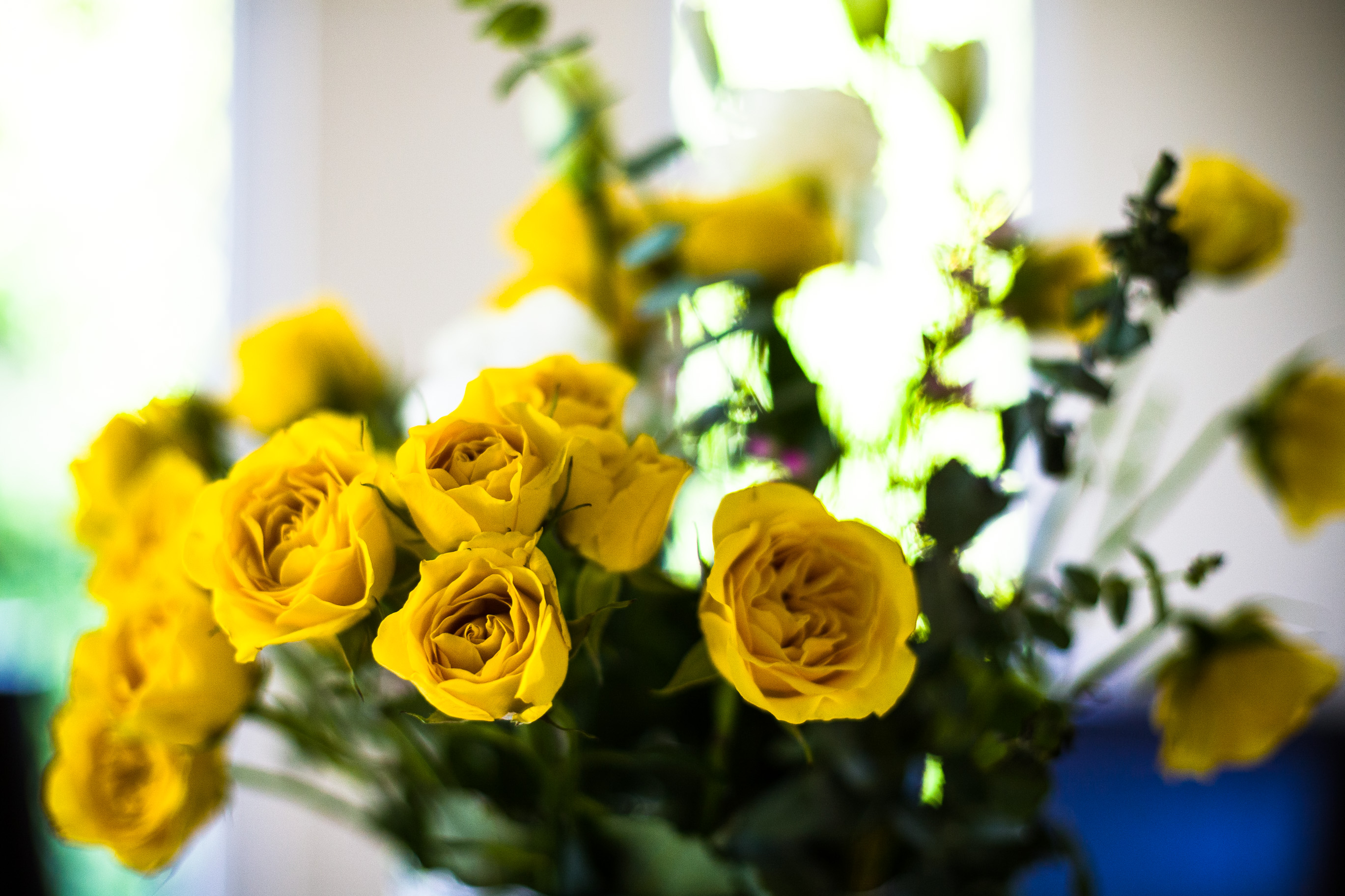 A bouquet of golden roses brighten up the room. Taken in Hollywood, FL, USA.