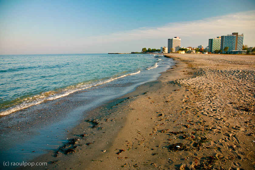 Finally, Romanian beaches are over-crowded. They’ve always been over-crowded. Given all I’ve written above, it’s not logical, but there it is. These days the government tests water samples at the most commonly used beaches in order to determine and announce the presence of unwanted organisms or chemicals and while we were in Constanta, they were quite clear that the water was full of unwanted bacteria in Mamaia (the main resort town). They were advising people to go further north and bathe in cleaner waters. Also, we tried taking a leisurely stroll on the boardwalk one evening. You know how in most places in the world, this is possible? In Mamaia, this turned into a game of dodging left and right and craning our necks to spot breaks in the crowd. It was insane. I’ve never seen so many people taking a “leisurely stroll” together anywhere in the world. It was stifling. I don’t do well in large crowds. We ended up turning onto the beach and walking among the breakers so we could get some peace and quiet.