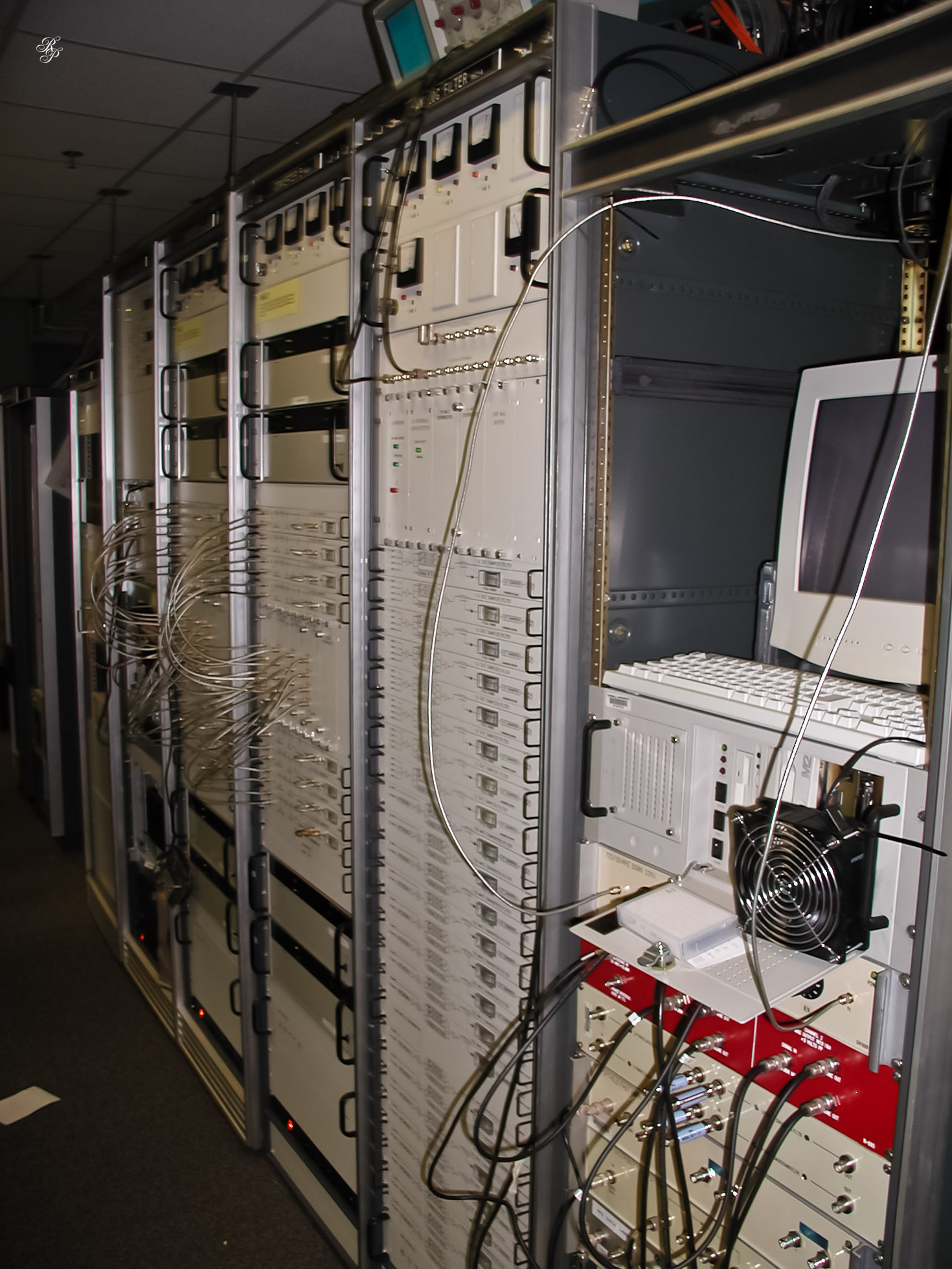 As we drove on the NRAO campus, Wesley stopped to show me his “hiding place” – his monitoring station, where he does his RFI hunt-work. It’s a big trailer that can be hauled from place to place, but has been made stationary and hooked up to power lines. Here he monitors the gross violations of the Quiet Zone and also looks at the local environment – powerline noise, illegal use of radios, etc. For example, at the time of my visit there, the amateur radio bands were being used improperly by a group of people and the signal was strong enough to overload the 140-foot telescope, so it became a serious problem. Wesley told me that it will likely be taken care of long before I write up about it, and the likely action taken will be that he calls the FCC in, to enforce the rules in place. After 20 years on the job, Wesley has built up a network of contacts he can call upon when he needs help. One of those contacts is the man in charge of the Enforcement Bureau at the FCC, whom Wesley knew when he was still a satellite technician.