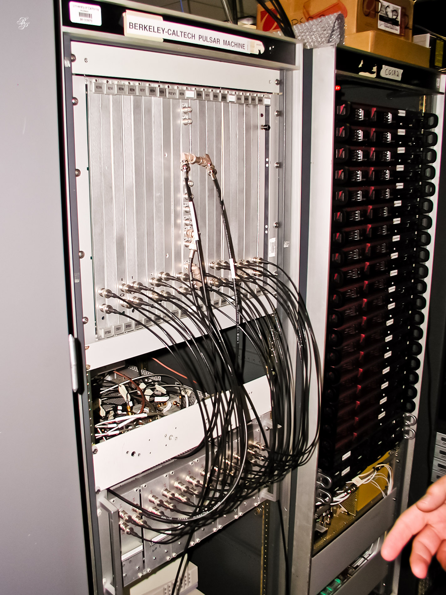 Why are pulsars interesting? Because the spin of certain pulsars is as accurate as we can time it with an atomic clock. What’s a second? 1/60th of a minute? No! It’s over 9 billion vibrations of a Cesium electron at a certain pressure and temperature. That’s the official definition. The pulsars that NRAO looks at spin at millisecond time intervals. A big research topic now is using the timing of pulsars to prove gravitational waves.