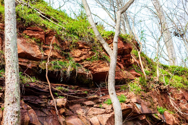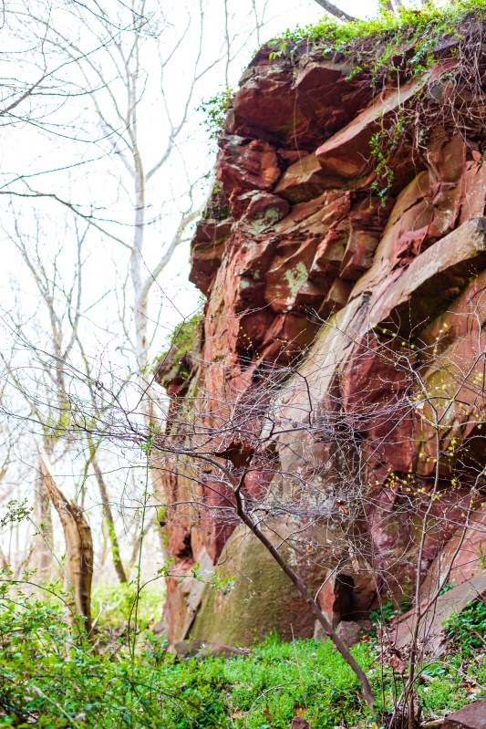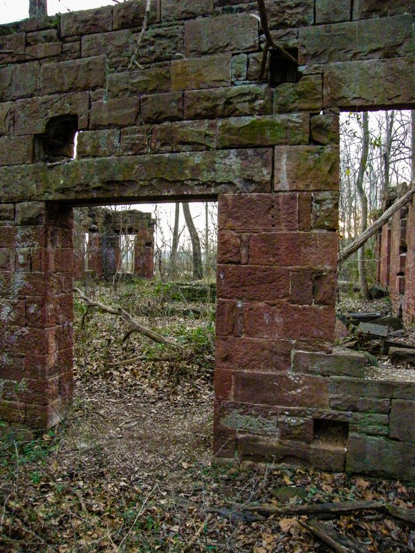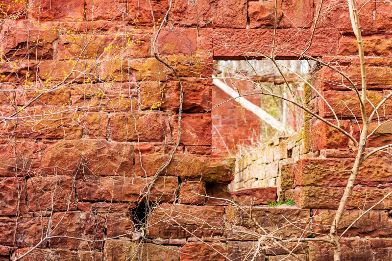 Should you find yourself hiking the Seneca Creek Greenway Trail, you’ll find the remains of a red stone building somewhere near Riley’s Lock, between the C&O Canal and the Potomac River. These ruins are what used to be the Seneca Stone-Cutting Mill, a quarry that operated on and off from 1837 to 1901. The quarry’s good years were from 1837 to 1876, particularly 1837 to 1848, according to this source. The tract of land on which the quarry was located was sold to the State of Maryland in 1972 and it became part of the Seneca Creek State Park.
