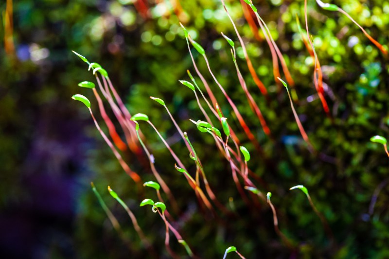 The moon rises in the sky as the night air stars to fill the valley. The last rays of sun can be glimpsed over the mountain peak, casting an orange glow on the clouds.