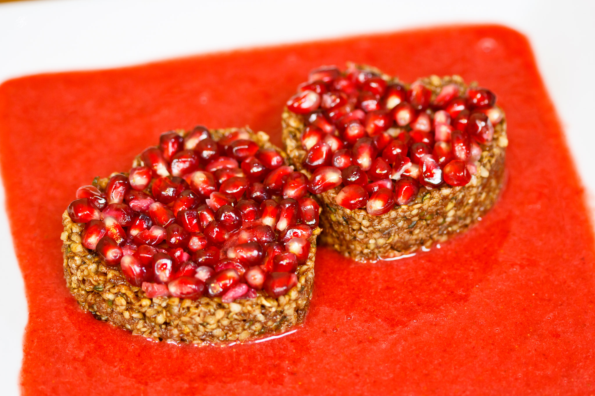 We made a special episode of Ligia’s Kitchen for Valentine’s Day, which we hope will provide you with a great recipe for your loved ones: raw, organic hemp hearts (brownies), glazed with strawberry sauce and topped with pomegranate!