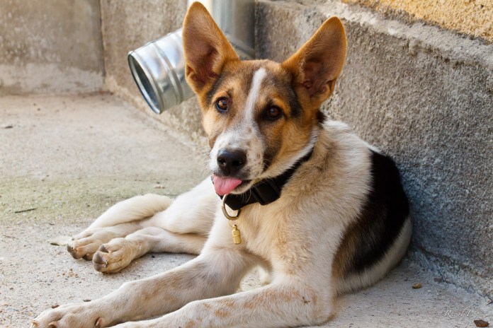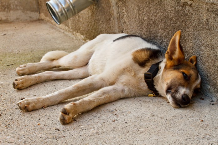 I fed him and he practically vacuumed up anything I gave him. I started to pet him, and he had no idea how to voice happiness. He would begin screeching and yowling as if he was in pain, yet his face clearly showed he was happy. This was a dog that had been ignored, beaten and malnourished. That’s when I decided we’d keep him. He was happy to stay. After his meal, he fell asleep next to the house, in the sun.