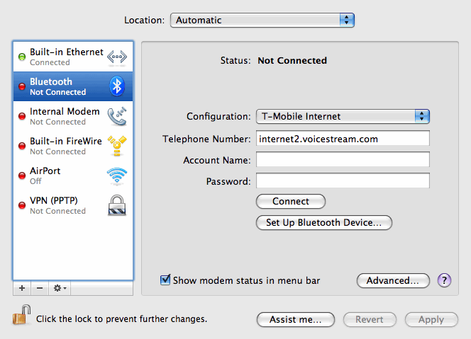 I’m indebted to this pre-existing tutorial from The Nokia Blog. However, I found the instructions a bit confusing, as the Mac OS X operating system has been updated since and the network preference screens don’t look the same. Consider my post an updated tutorial, with screenshots from the current Mac OS X (10.5.5).