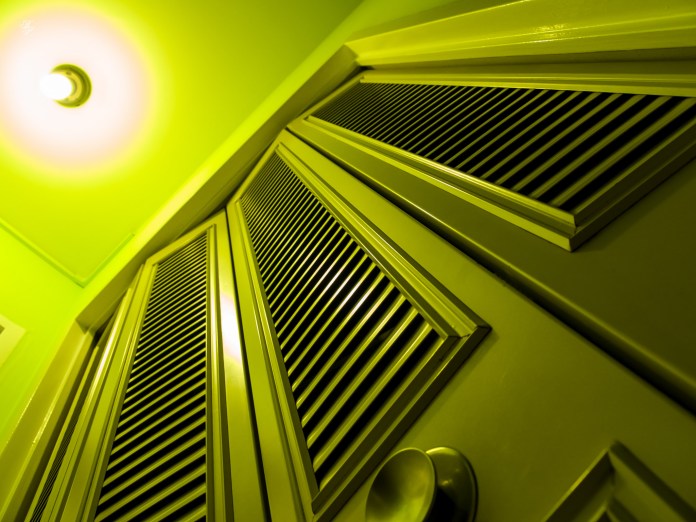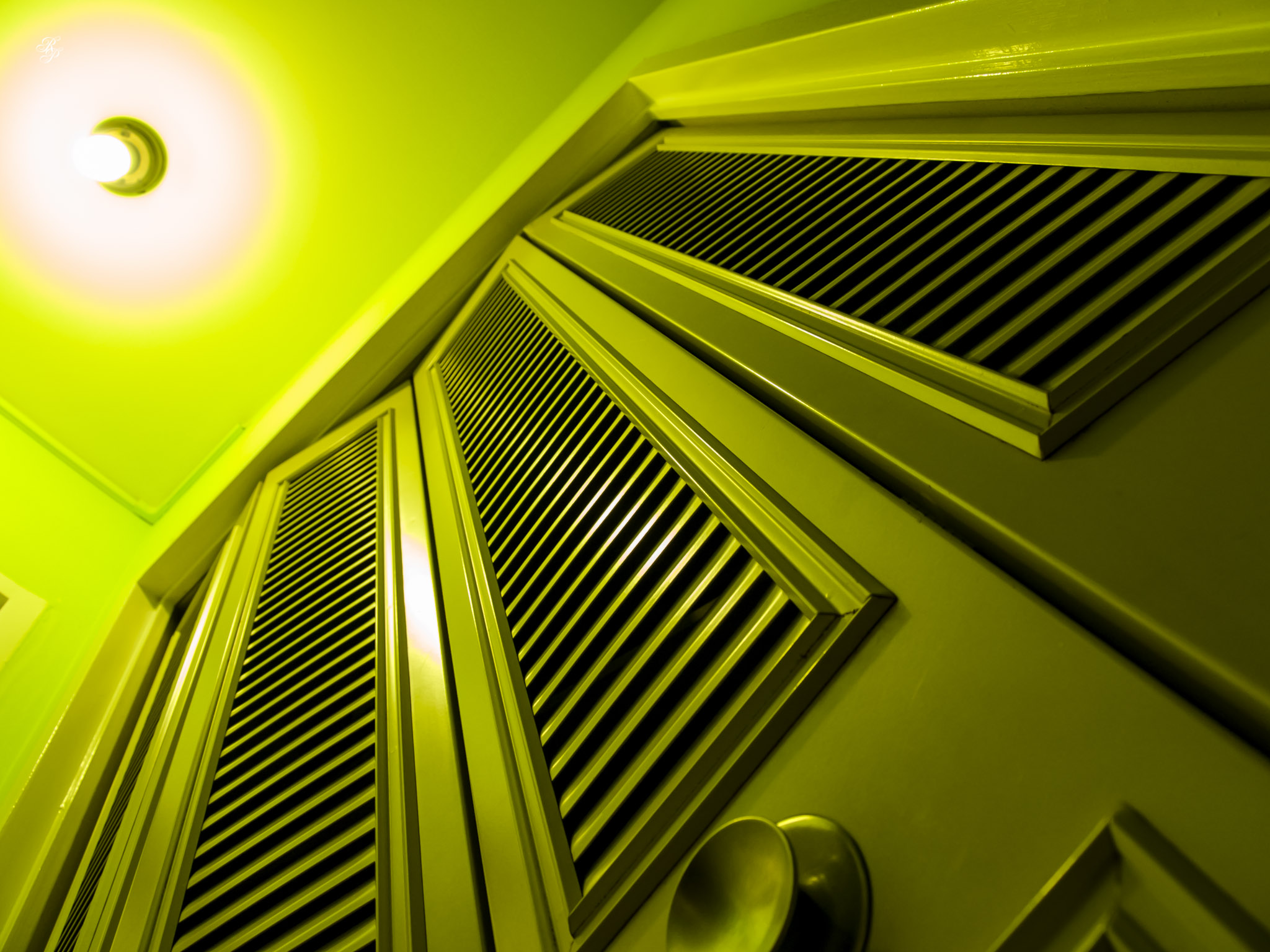 A simple round ceiling lamp can be reimagined like this, emphasizing its glow by overexposing it and vignetting the corners.