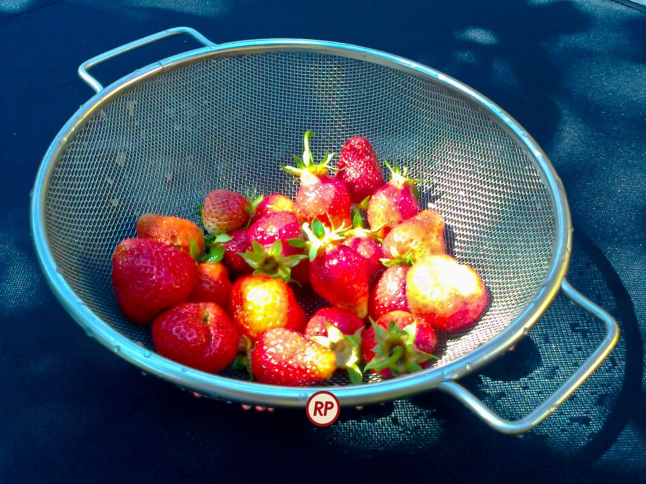 At this morning’s breakfast, we had fresh strawberries from our garden. It was the first ripe batch this season, picked just minutes before we ate them. No artificial ripeners or chemicals used in our garden, I can tell you that!