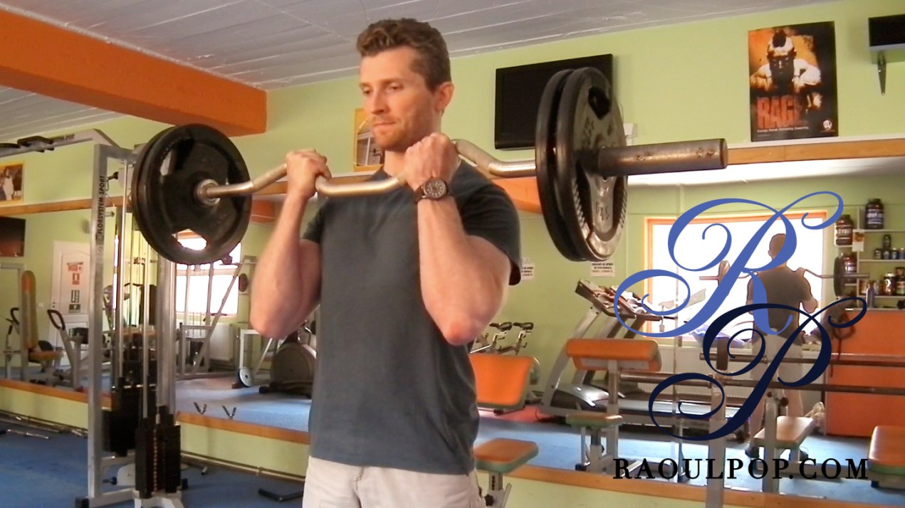 - Standing curls with preacher bar,