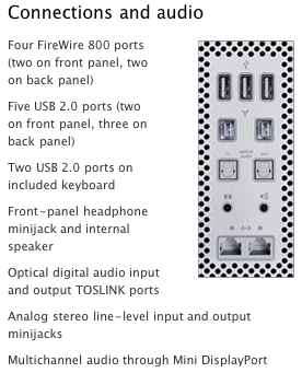 If Thunderbolt is “the fastest, most versatile I/O in a desktop”, why is it MIA on the Mac Pro? Shouldn’t it be on Apple’s most powerful desktop? If it’s got 10 Gbps data channels, and it’s tens of times faster than FW800 or USB 2.0, why isn’t it on the Mac Pro?