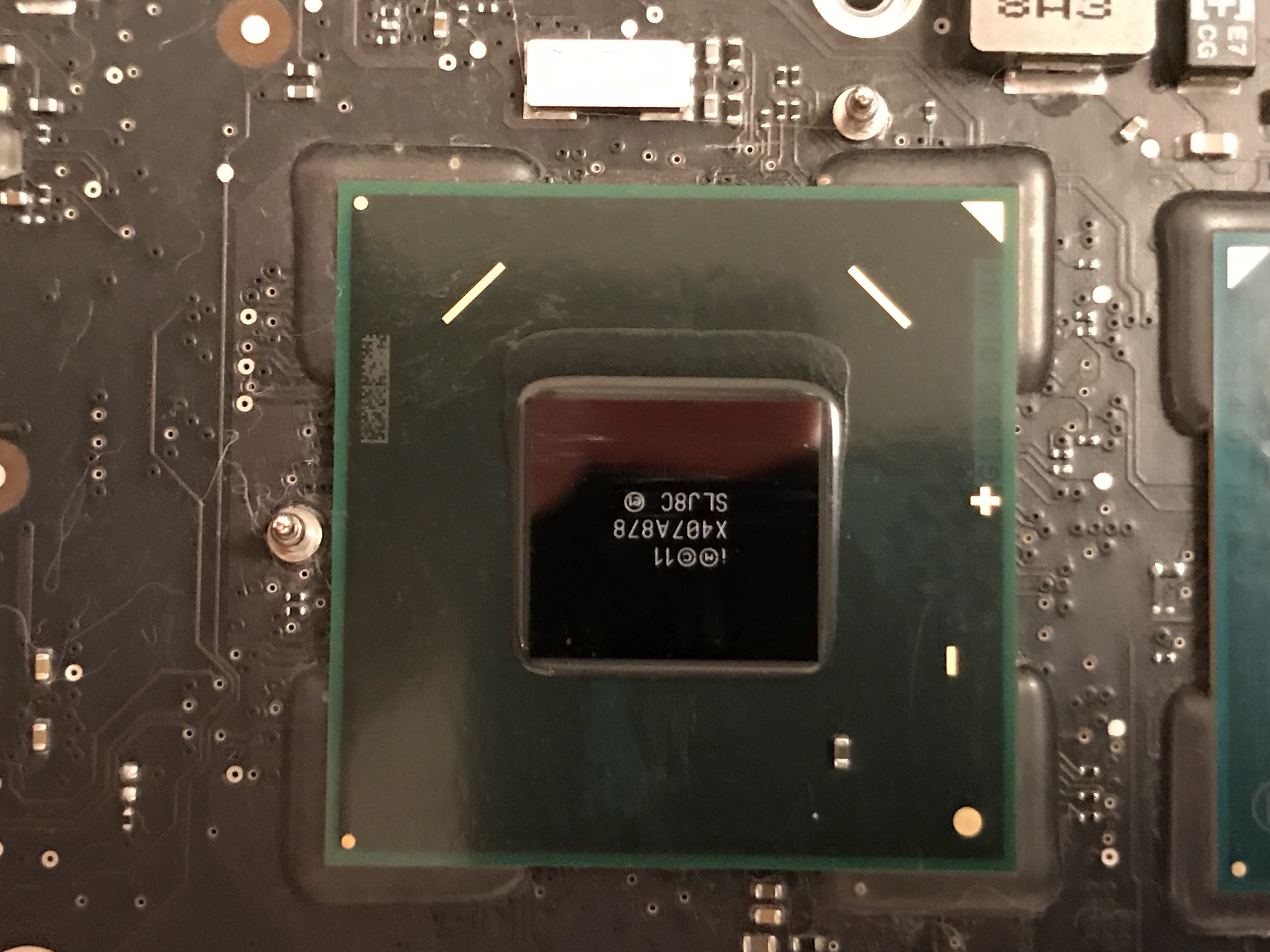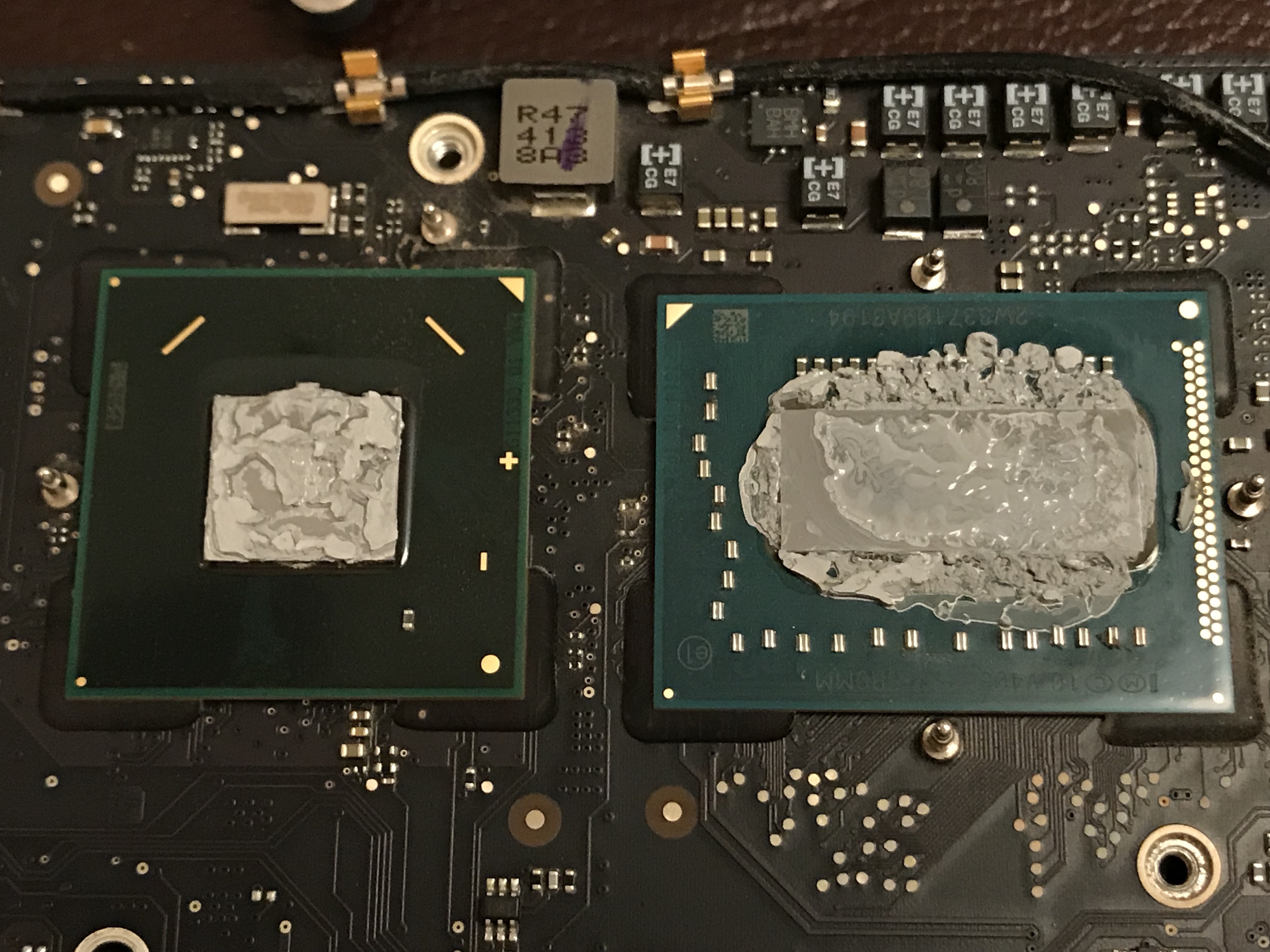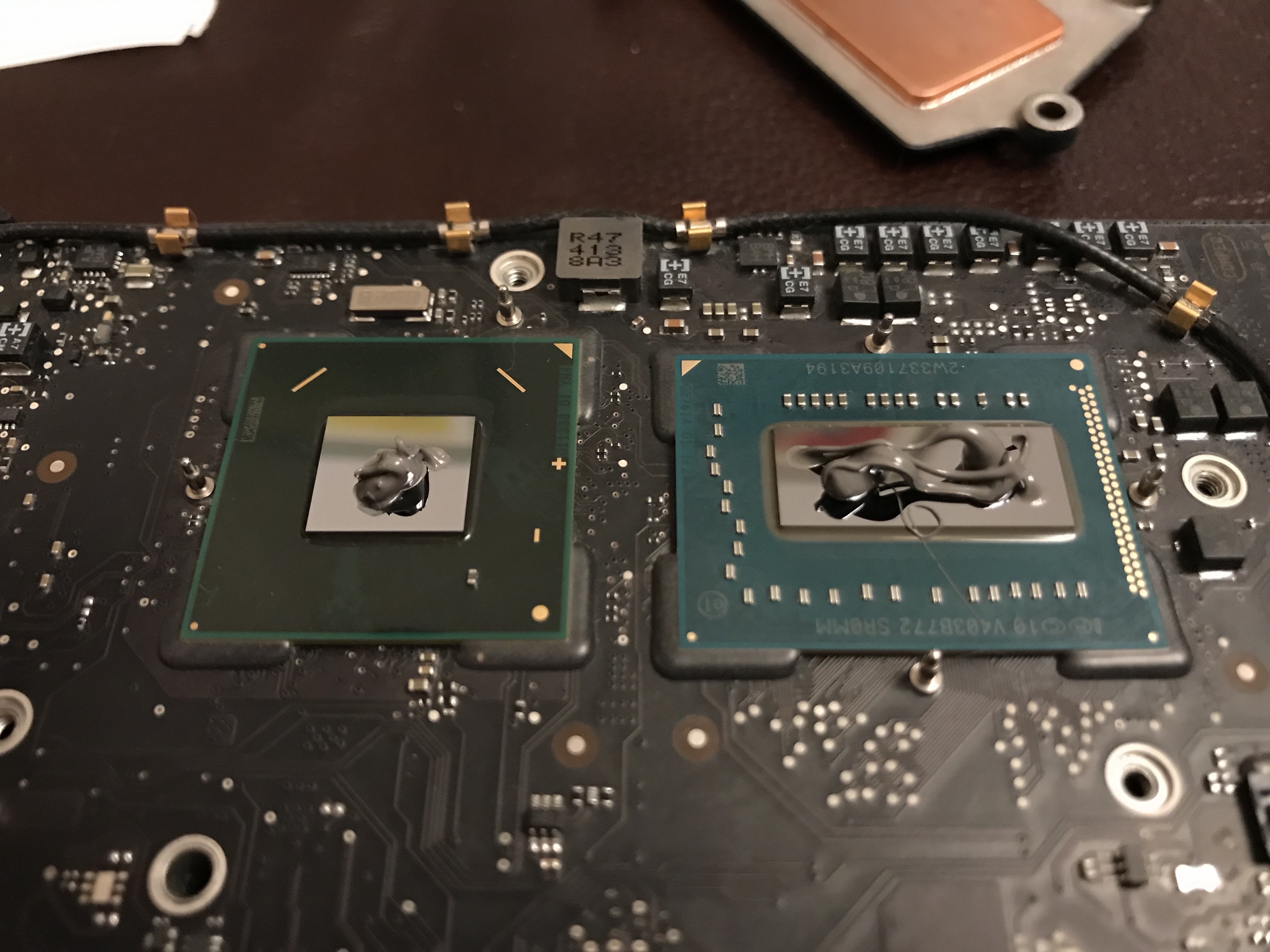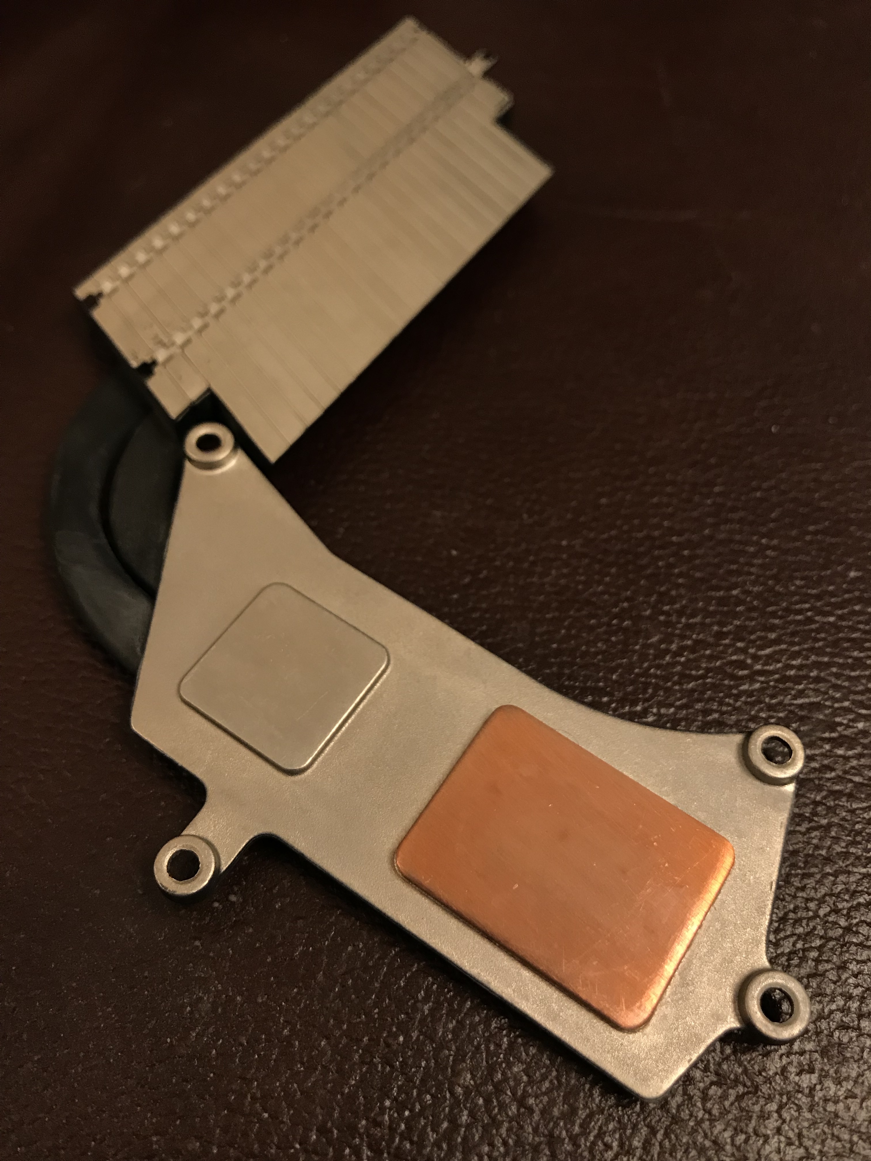 In the meantime I wanted my computer up and running, so that same night, I took the risk and re-assembled the heatsink with only three working screws. I knew I was running the risk of overheating due to an uneven heat transfer between the chip and the heatsink, but I also suspected the chip had some sort of heat management logic built in, and would probably run at a slower clock speed if it saw a heat spike. Indeed, that’s what happened: my iMac was a little bit slower in the interim.